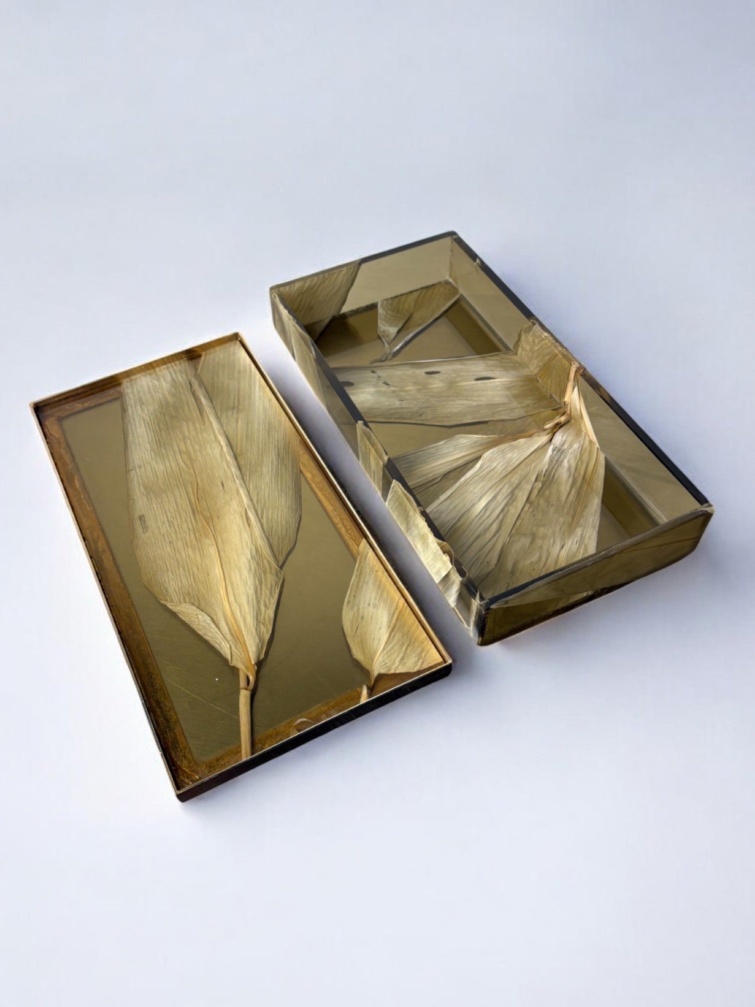 Aldo Tura Style vanity Box in lucite with dry tabaco leaves, 1970's