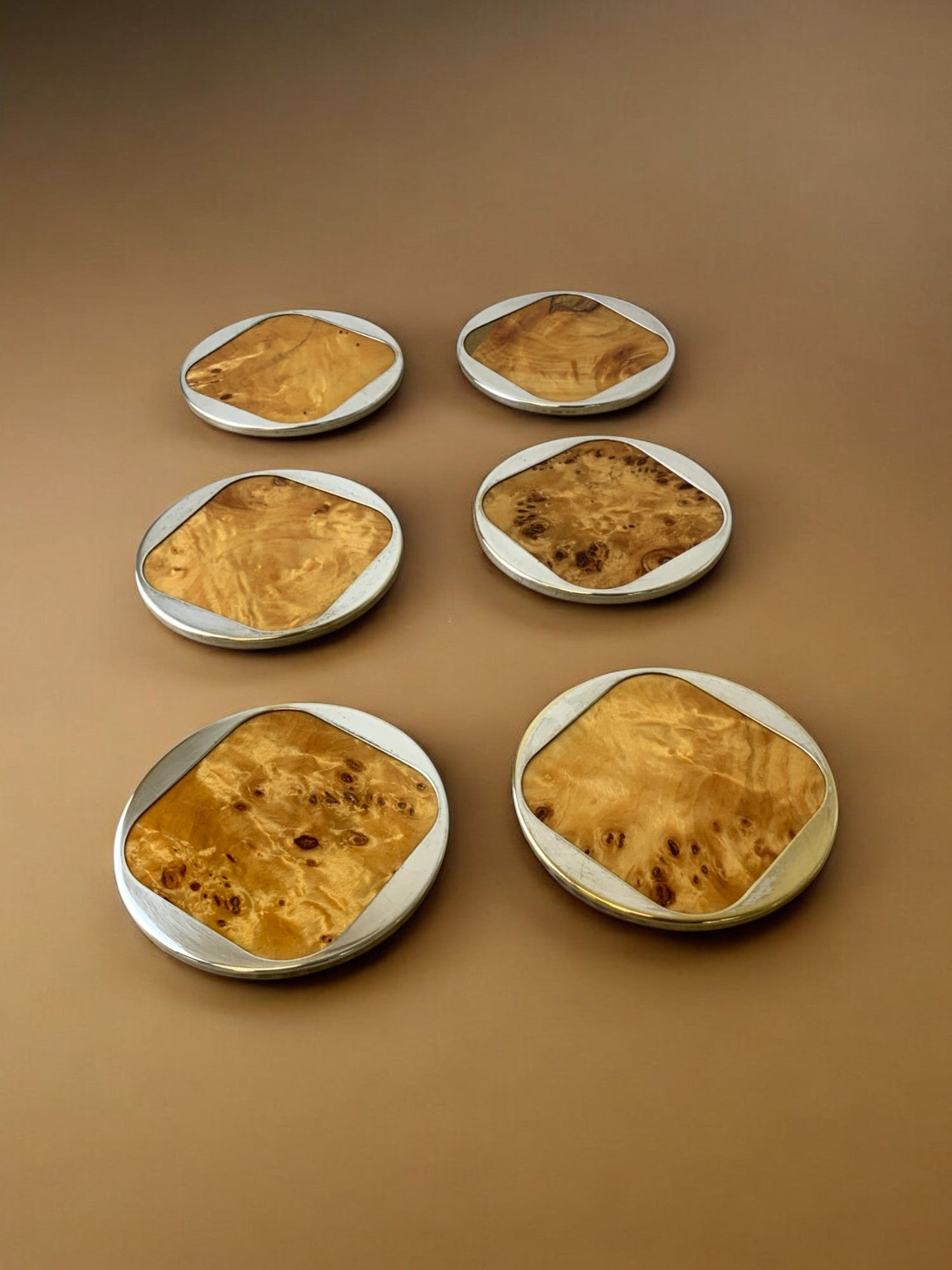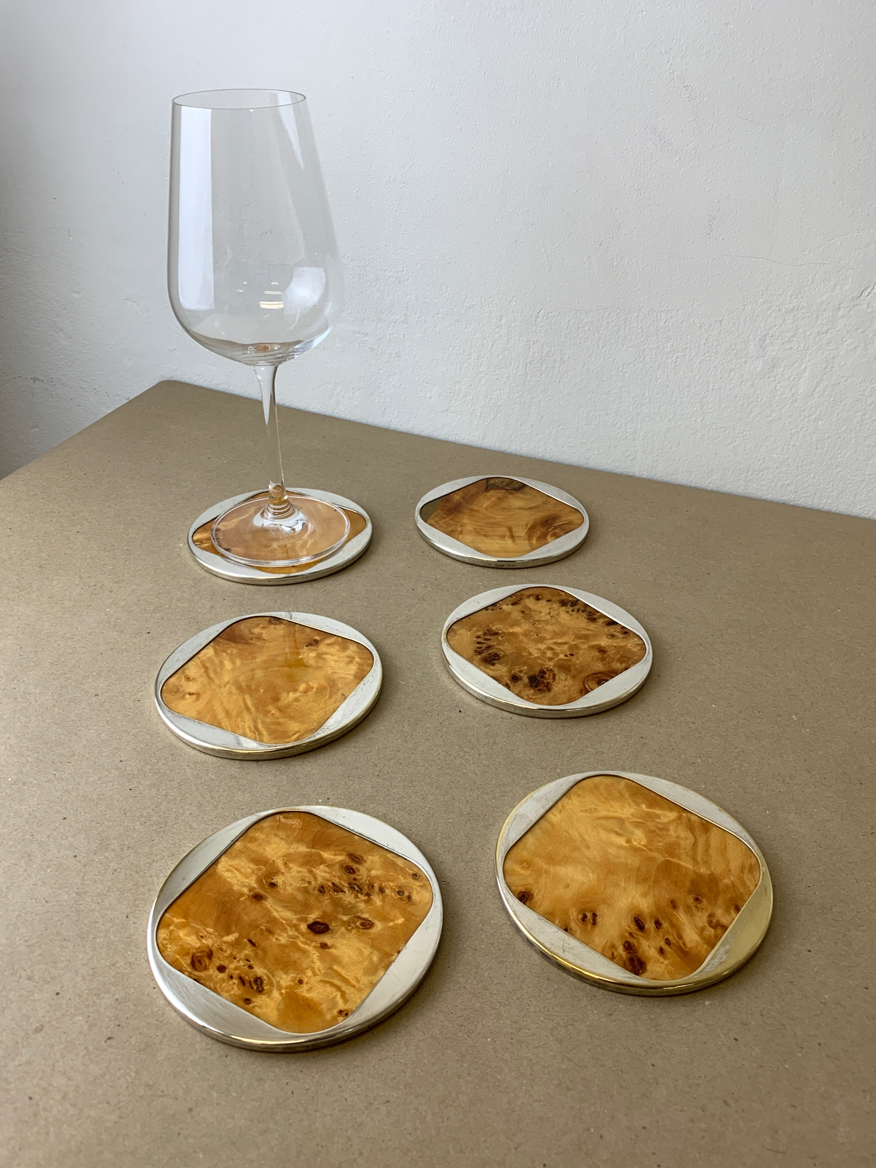 Aldo Tura Style Coasters in Lucite burl wood, set of 6, Italy, 1970's