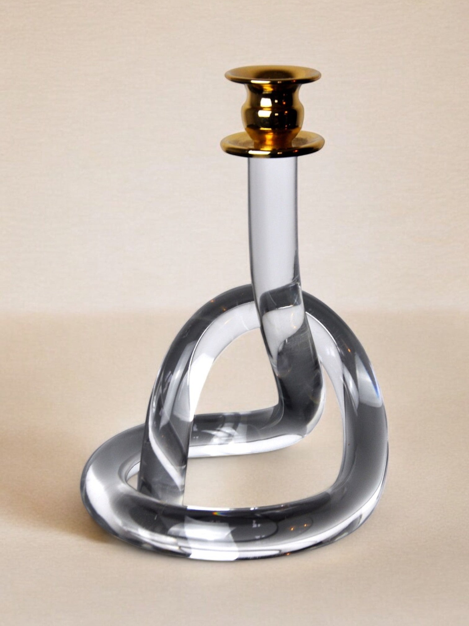 1970s lucite candle holder with pretzel shaped gold colored brass holder designed by elaine bscheider for dorothy thorpe. Superb design and vintage object to decorate your interior. Ref time: 567.