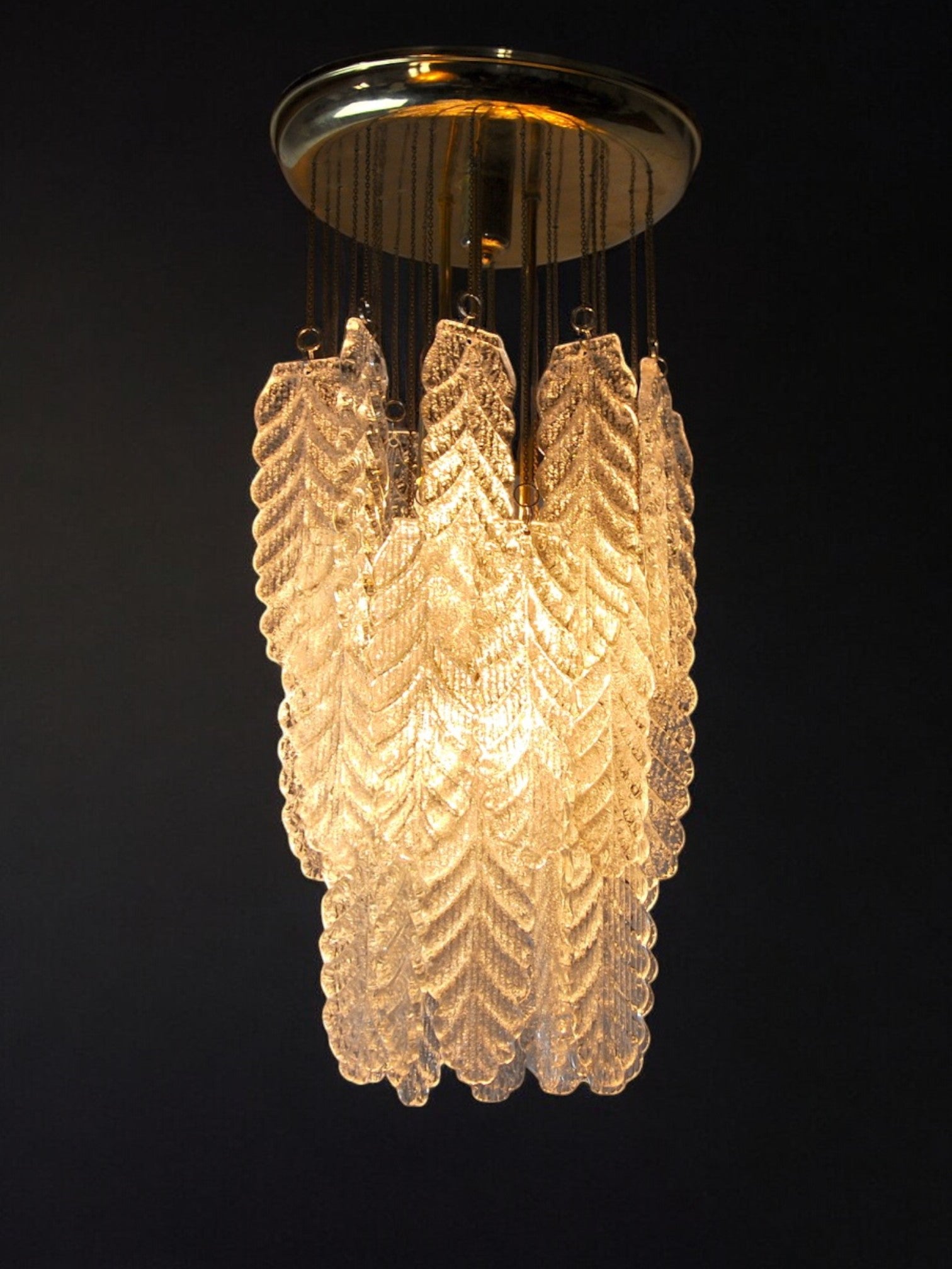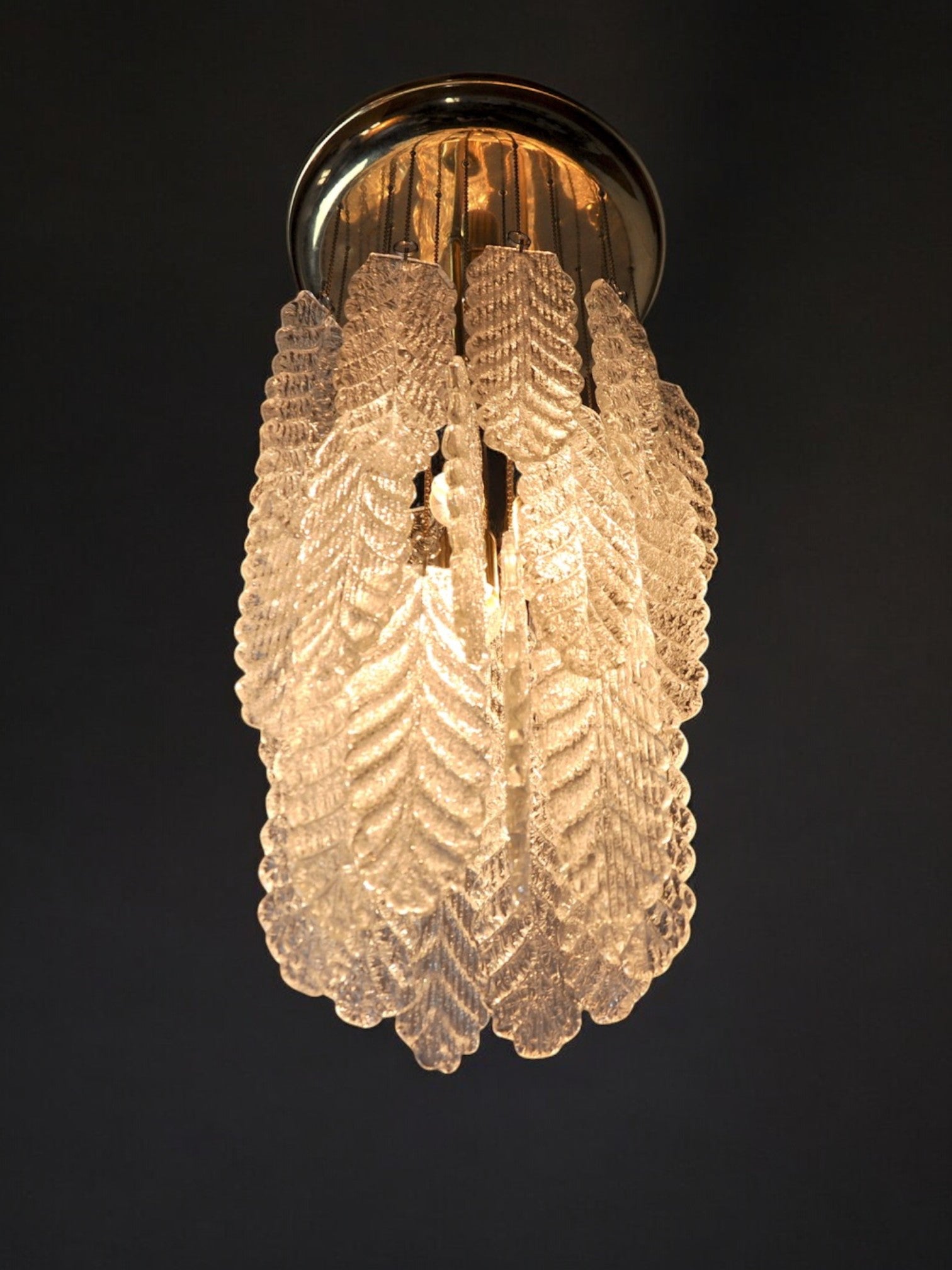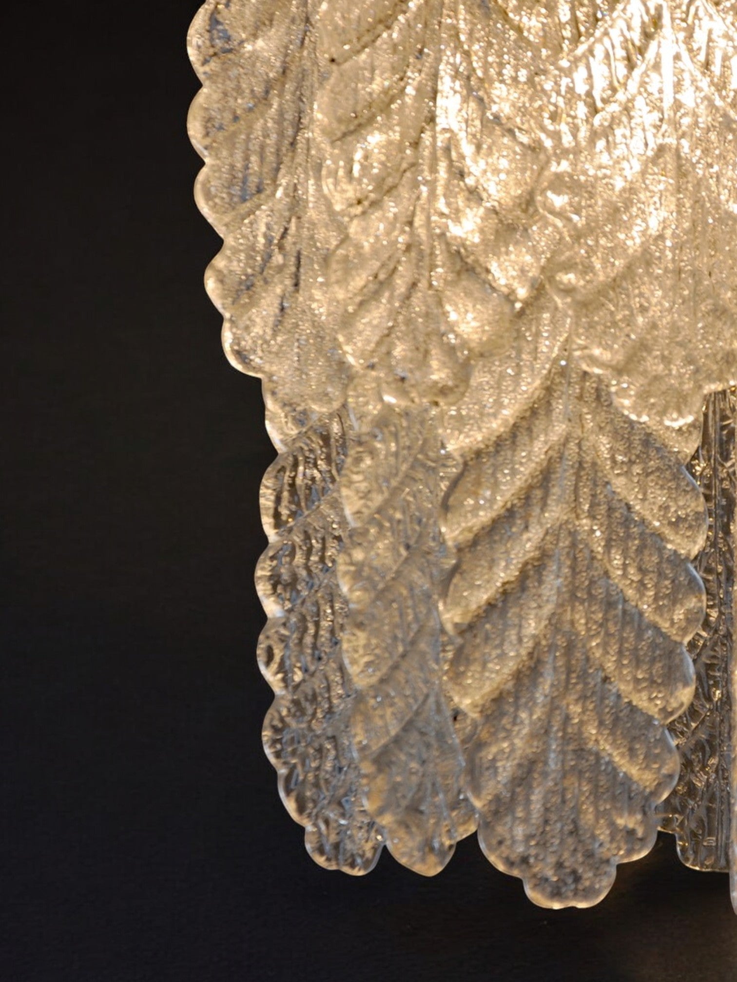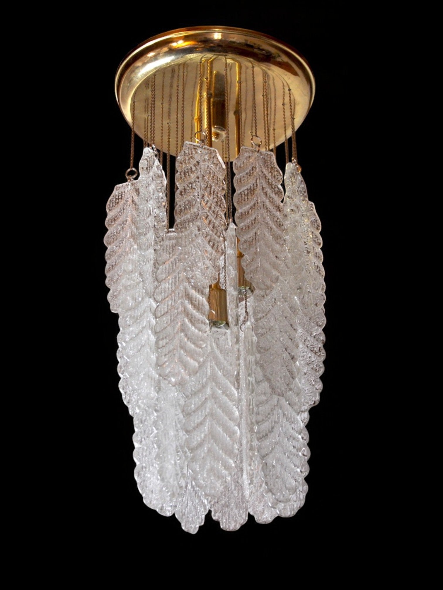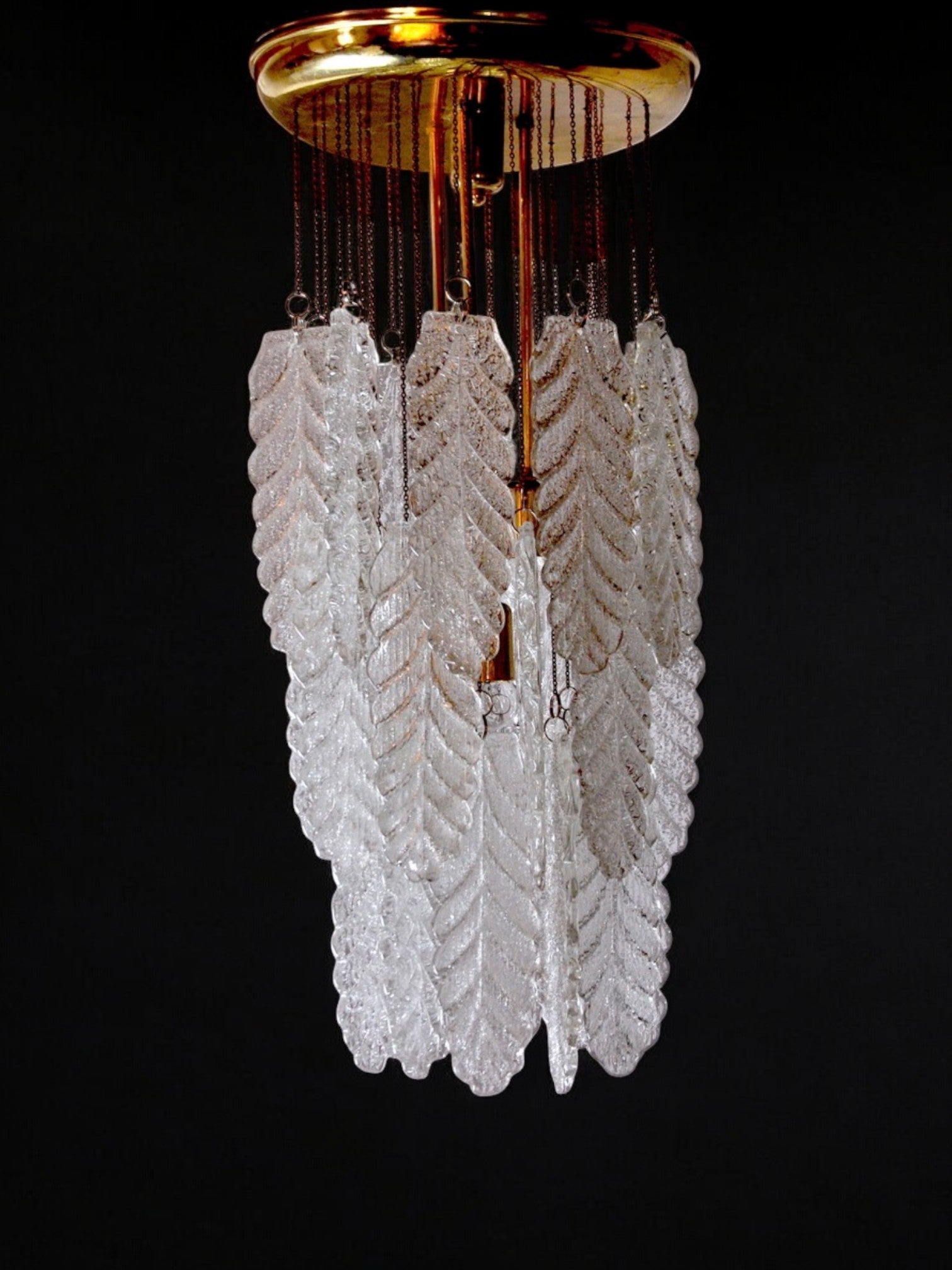 Floral Murano Mazzega cascade chandelier, Frozen Murano glass leaves, Italy, 1970
