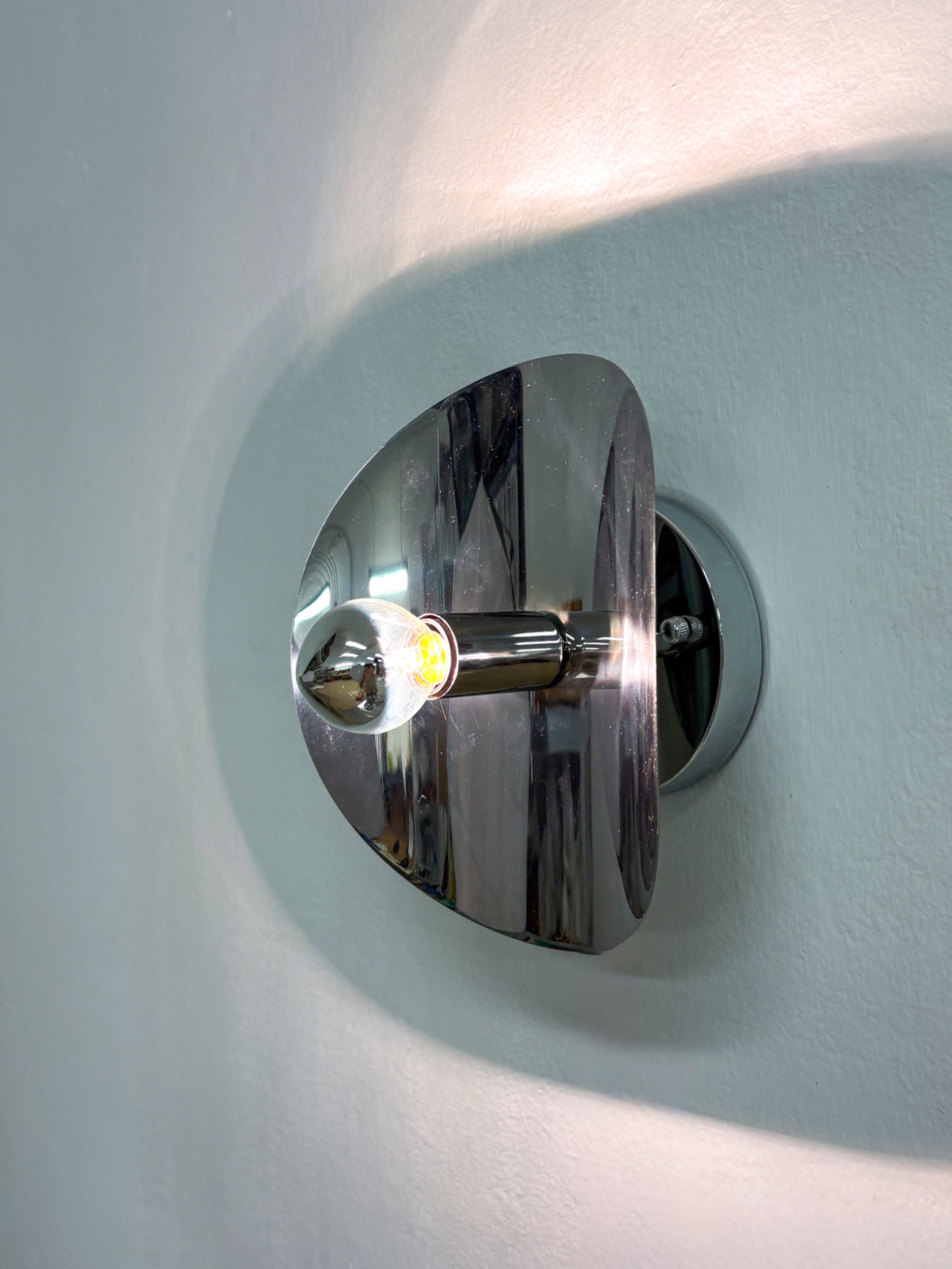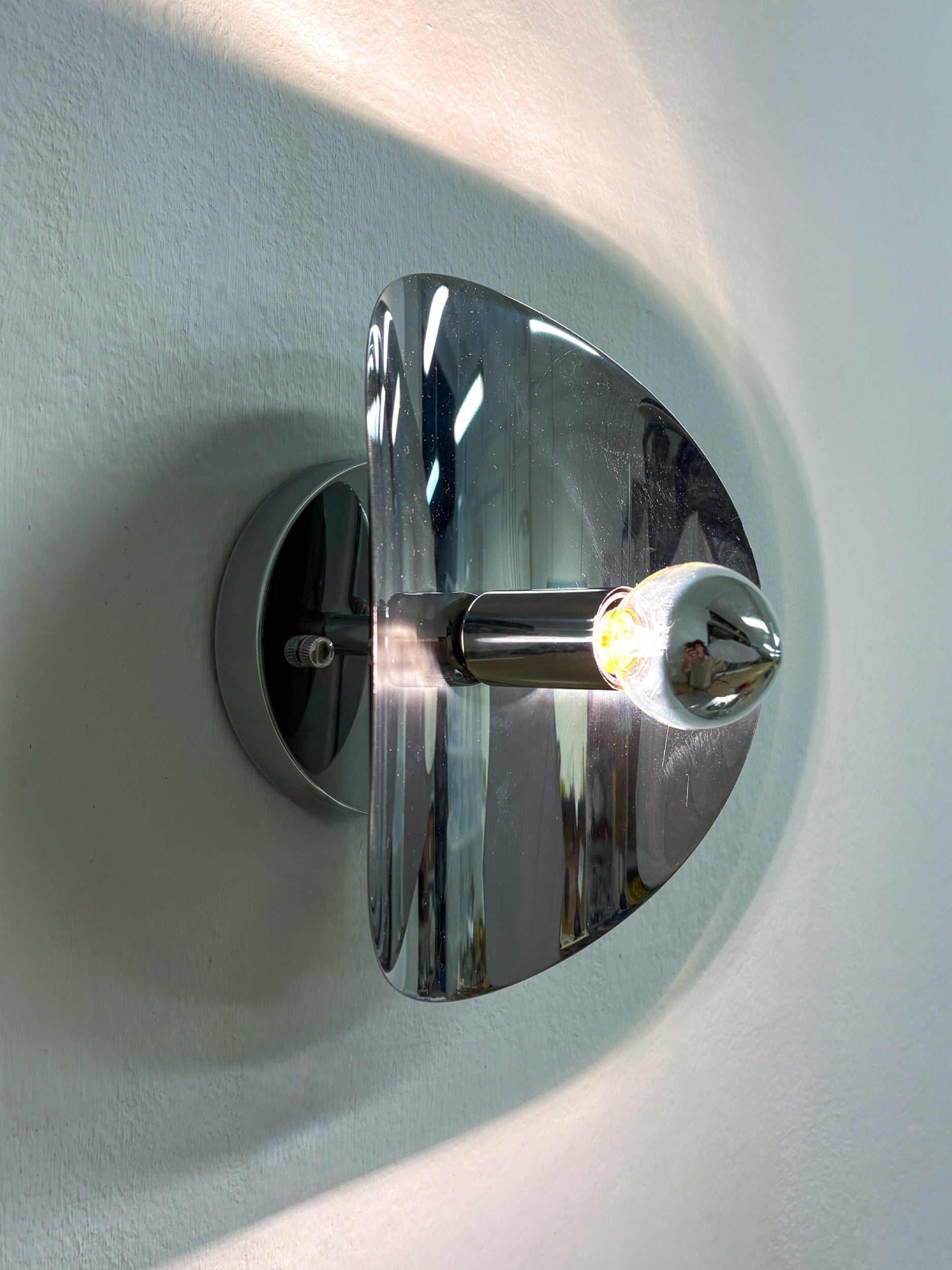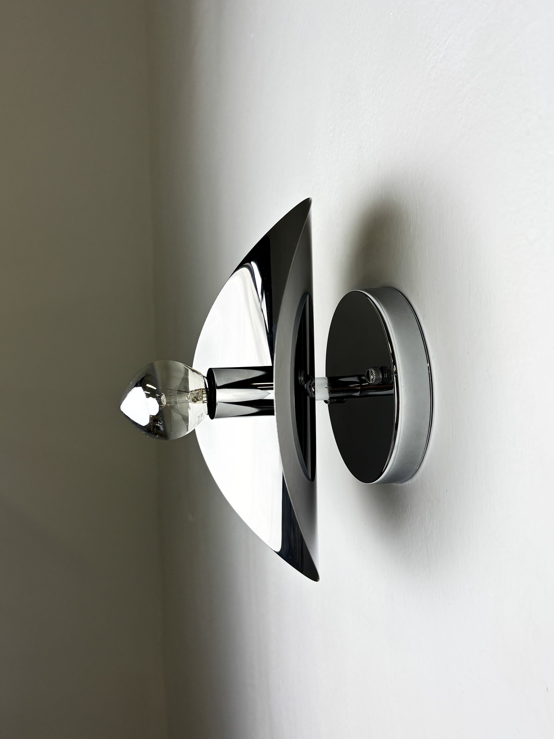 "Folio" sconce, space age, chromed metal, Italy, 1970