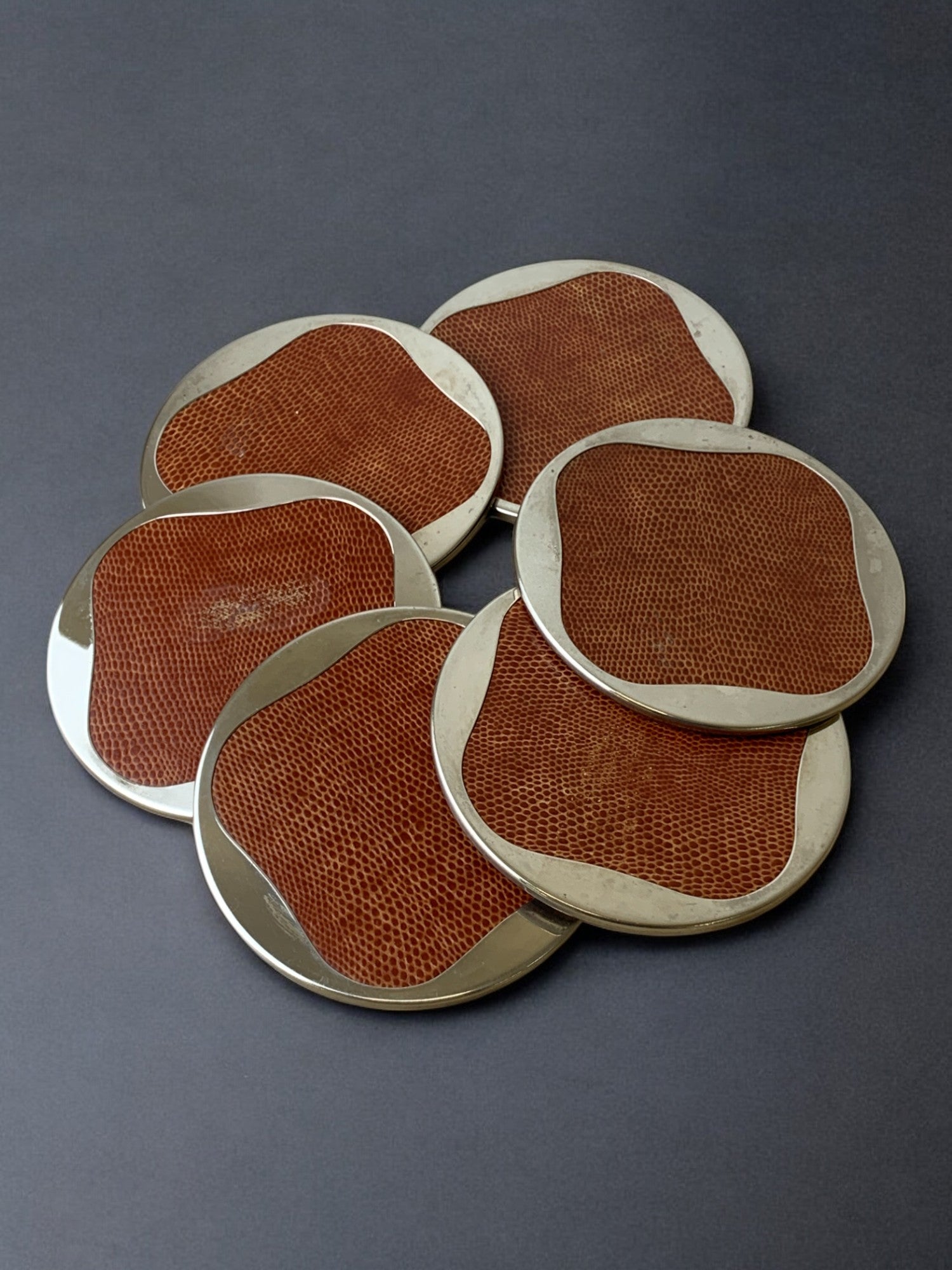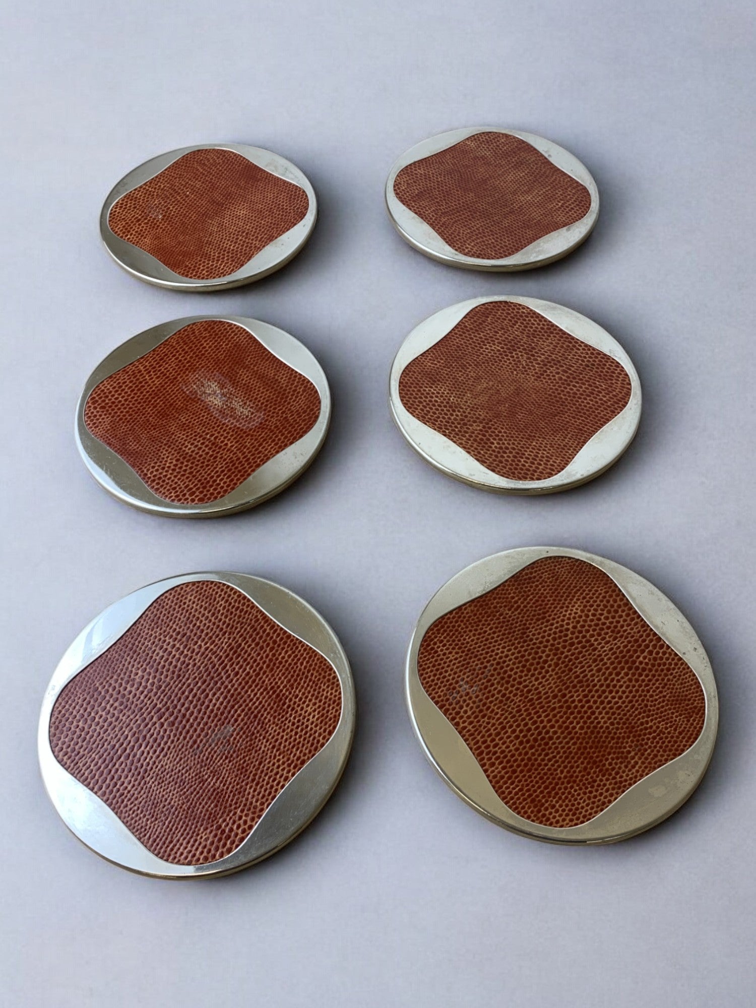 Gabriella Crespi Style leather coasters, set of 6, Italy, 1970's
