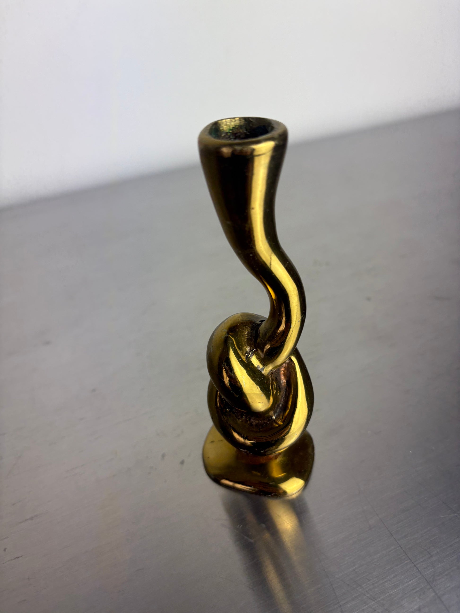 Knot candlestick, brutalist design, bronze, Italy, Circa 1970