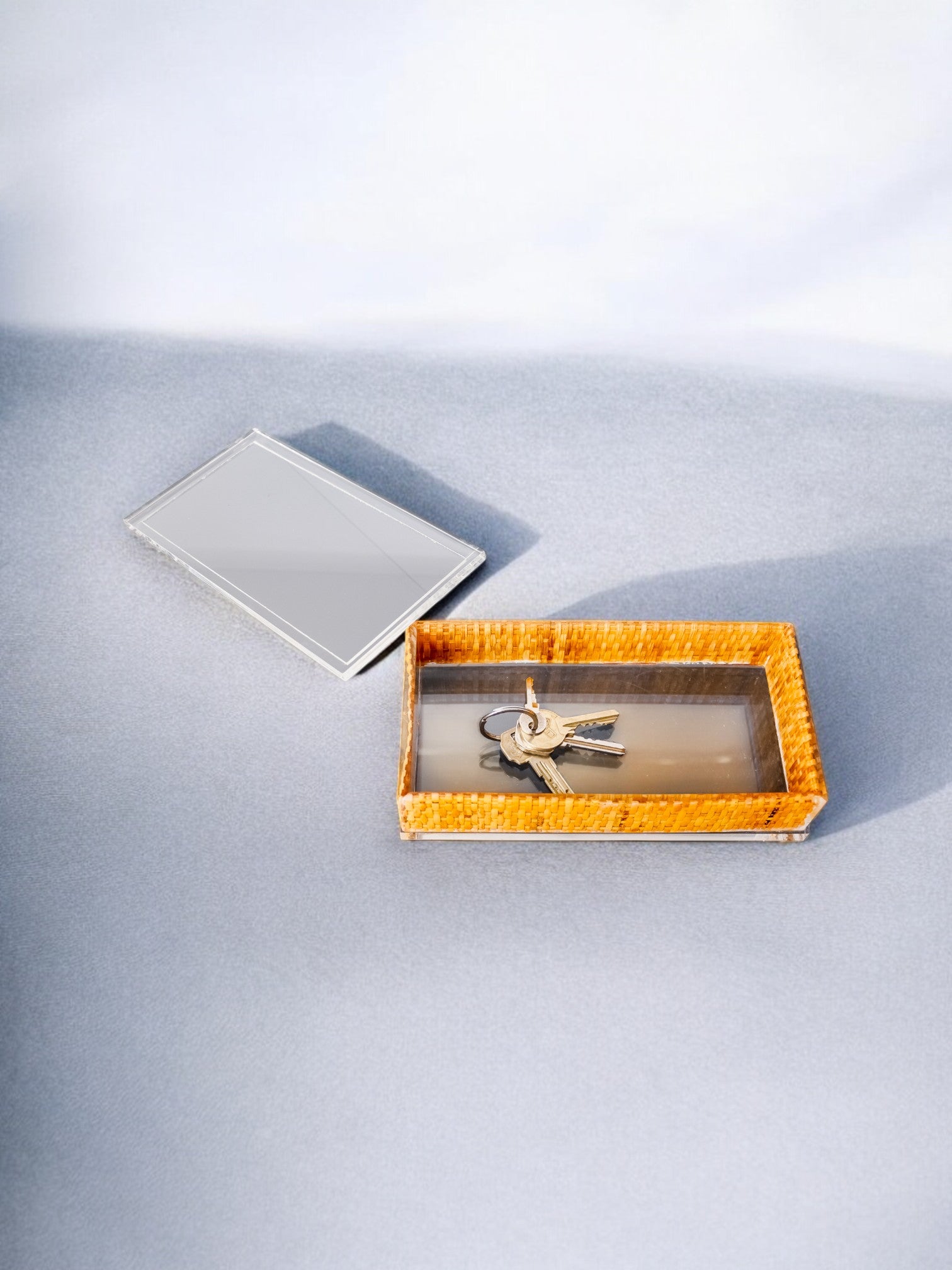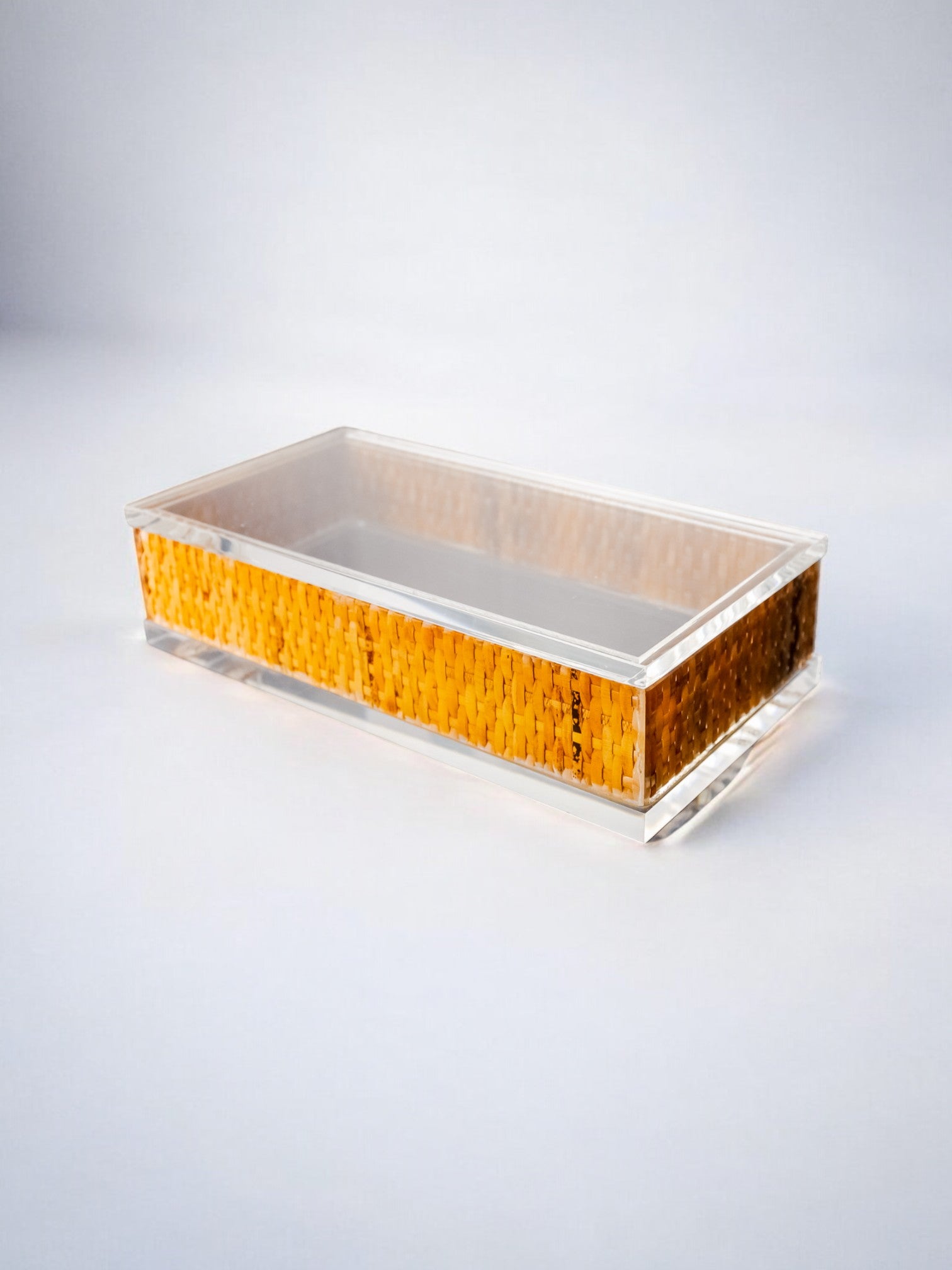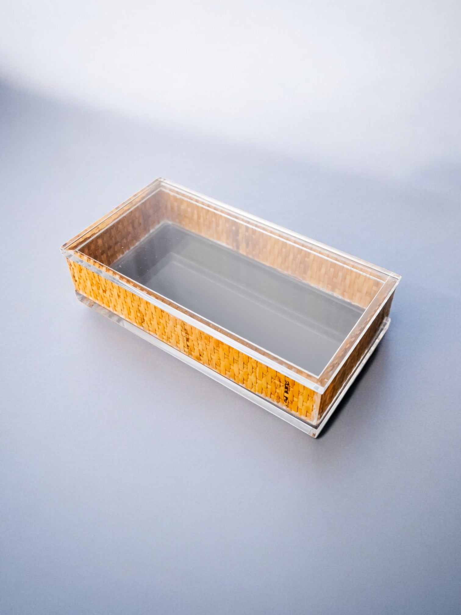 Lucite and Rattan vanity boxe, Christian Dior Style, Italy 1970s