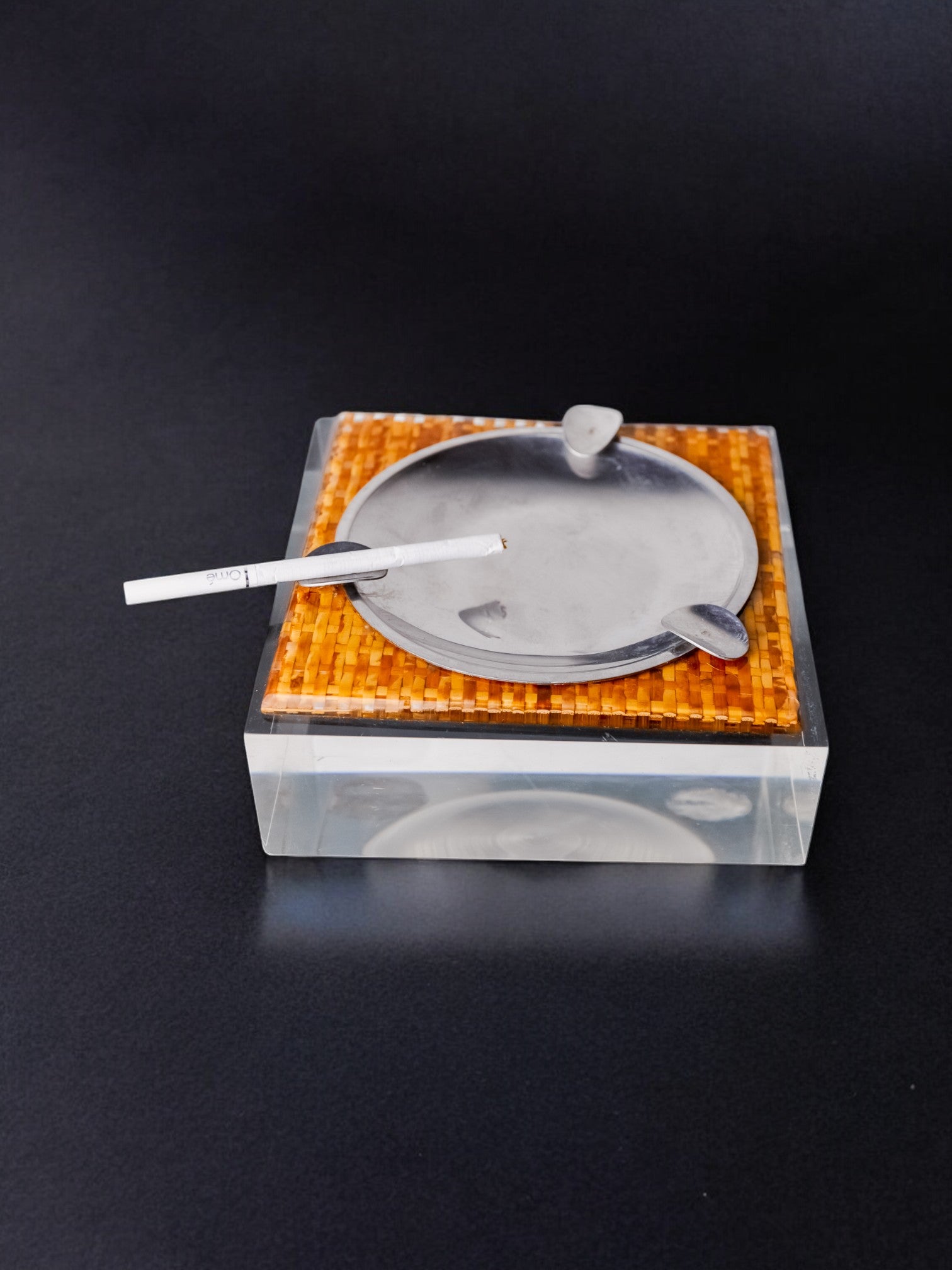 Exquisite 1970s Italian lucite and rattan ashtray attributed to Gabriella Crespi for Dior Home. This elegant piece combines timeless craftsmanship sophisticated design, adding a touch of luxury and refinement to any interior. Ref:1837. Dimensions: H5 x l13,5 x d13,5 cm