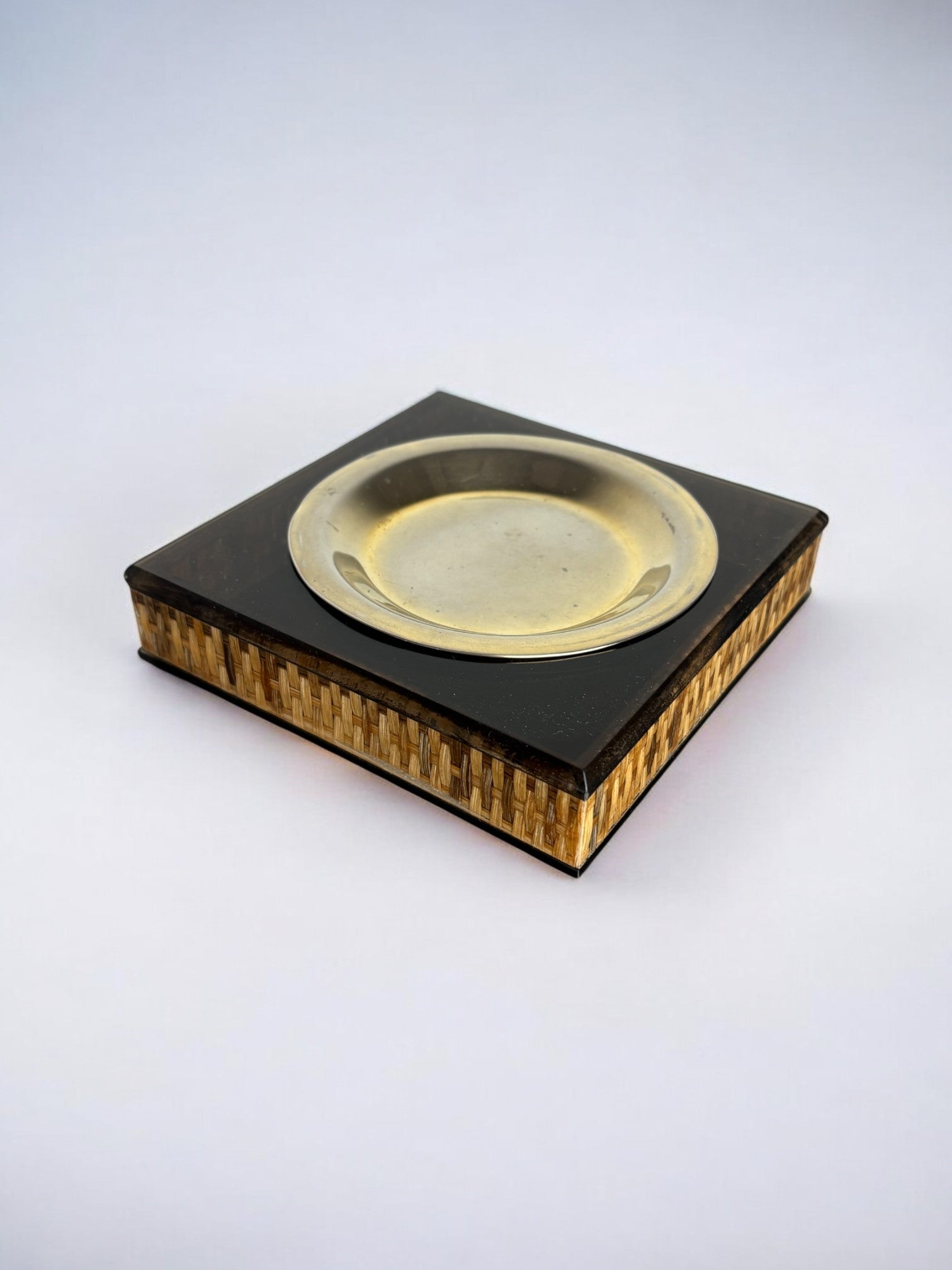 Exquisite 1970s Italian lucite and rattan ashtray attributed to Gabriella Crespi for Dior Home. This elegant piece combines timeless craftsmanship sophisticated design, adding a touch of luxury and refinement to any interior. Ref:2048. Dimensions: H3 x l13 x d13 cm