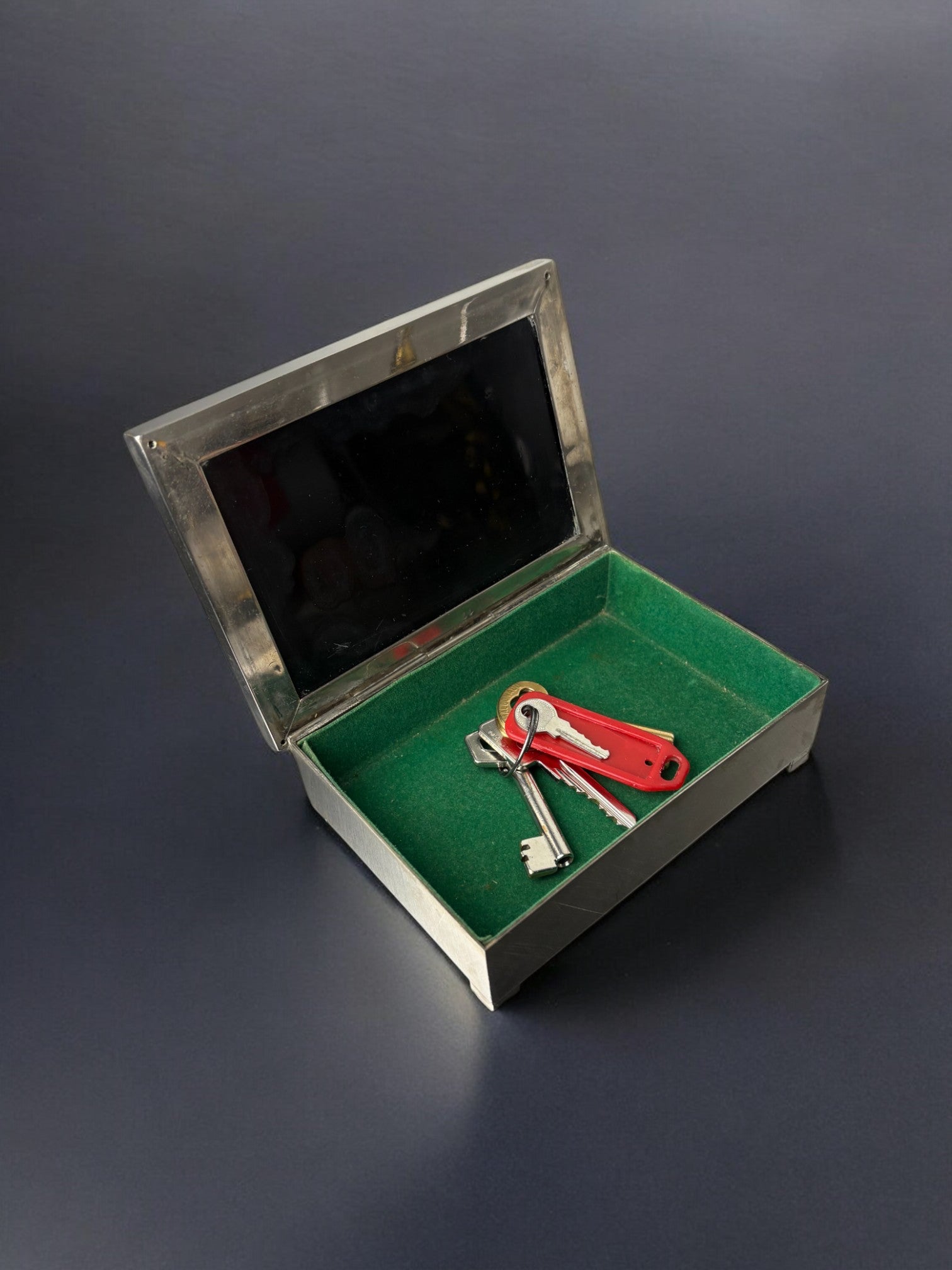 Exquisite 1970s Italian lucite and rattan chromed jewelry box, attributed to Gabriella Crespi for Dior Home. This elegant piece combines timeless craftsmanship sophisticated design, adding a touch of luxury and refinement to any interior. Ref:1960. Dimensions: H4,5 x l15 x d10,5 cm