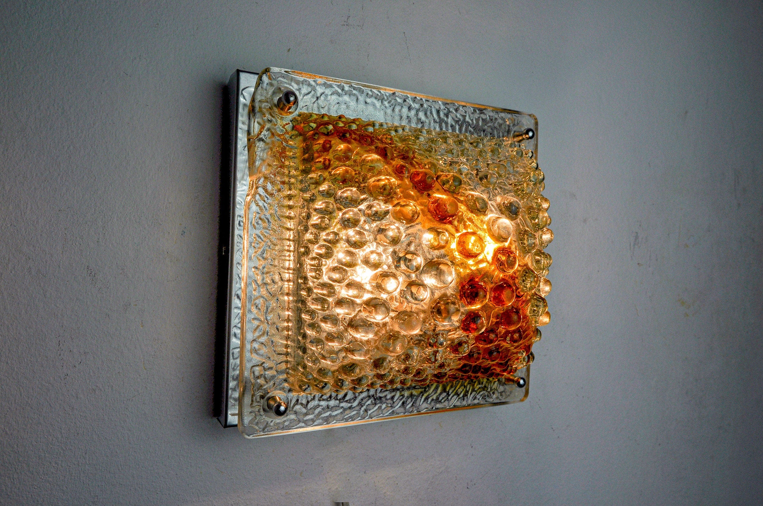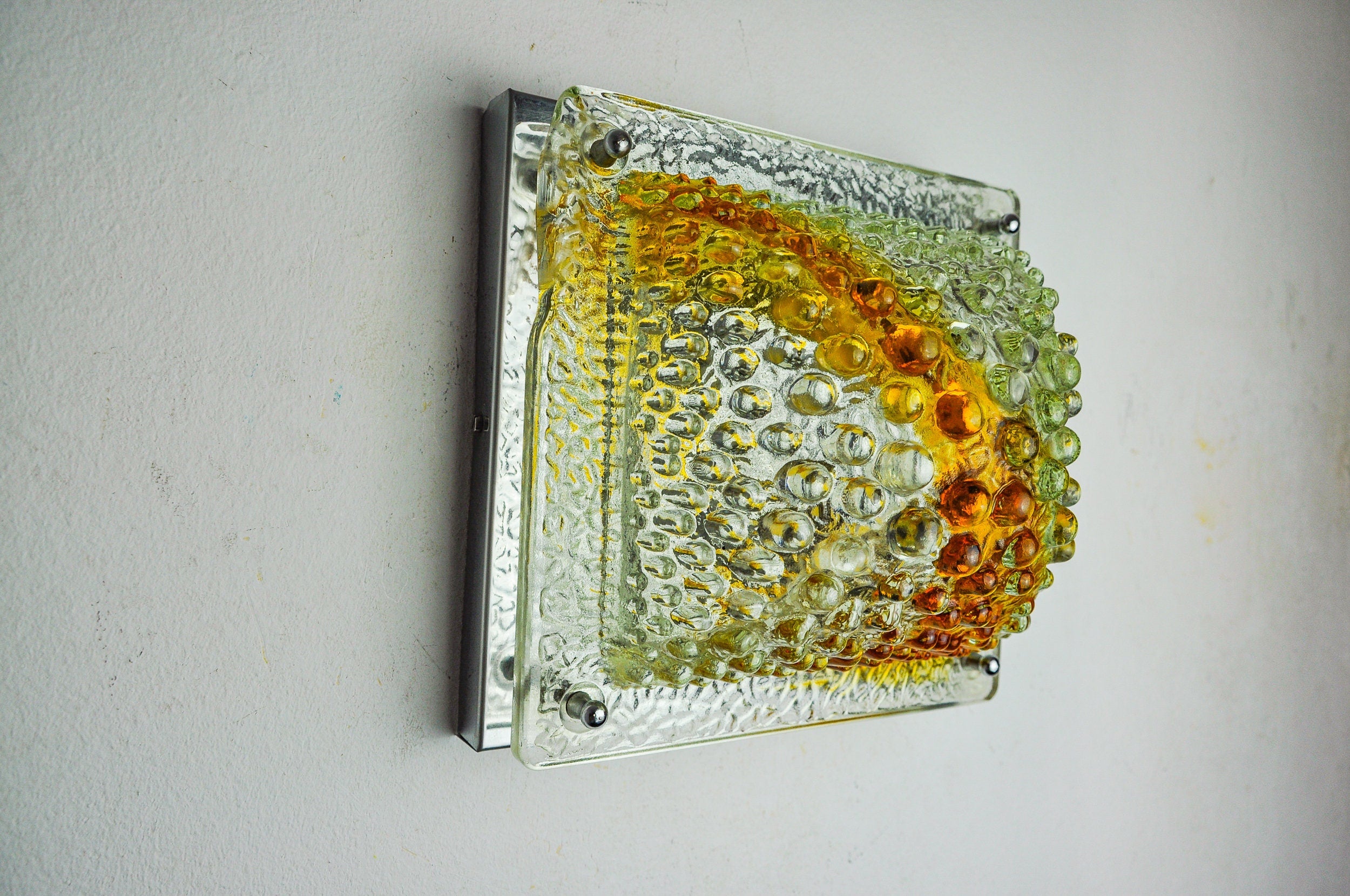 Murano Mazzega orange wall light, ice cube effect, Italy, 1970