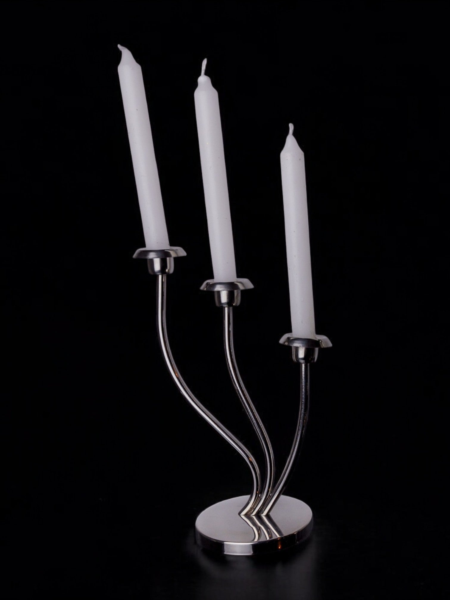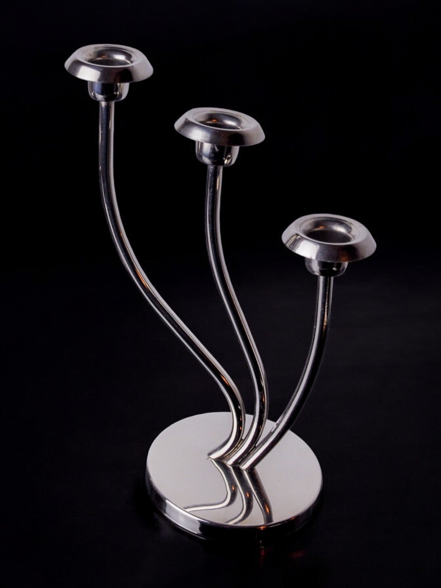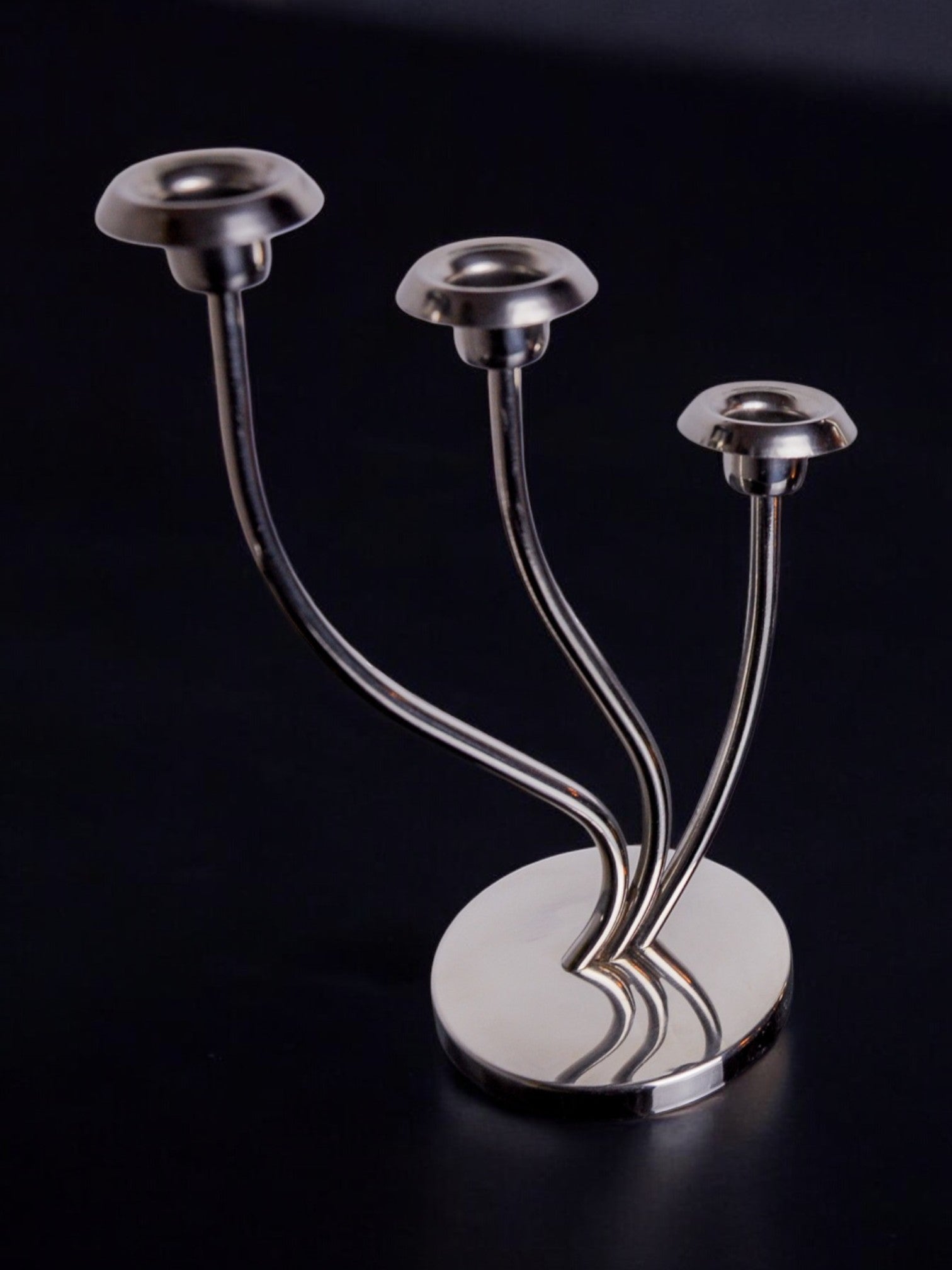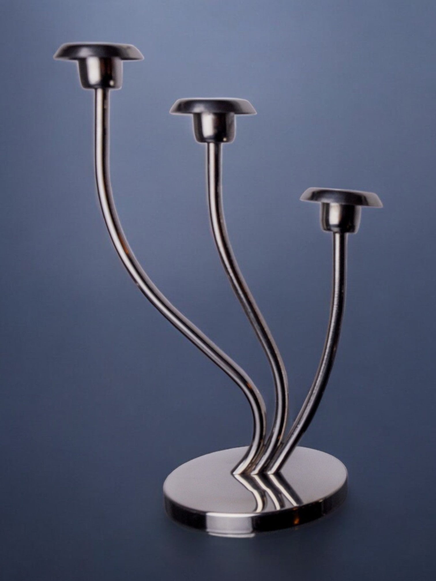 Art deco candlestick in stainless steel 3 flames, Spain, 1970