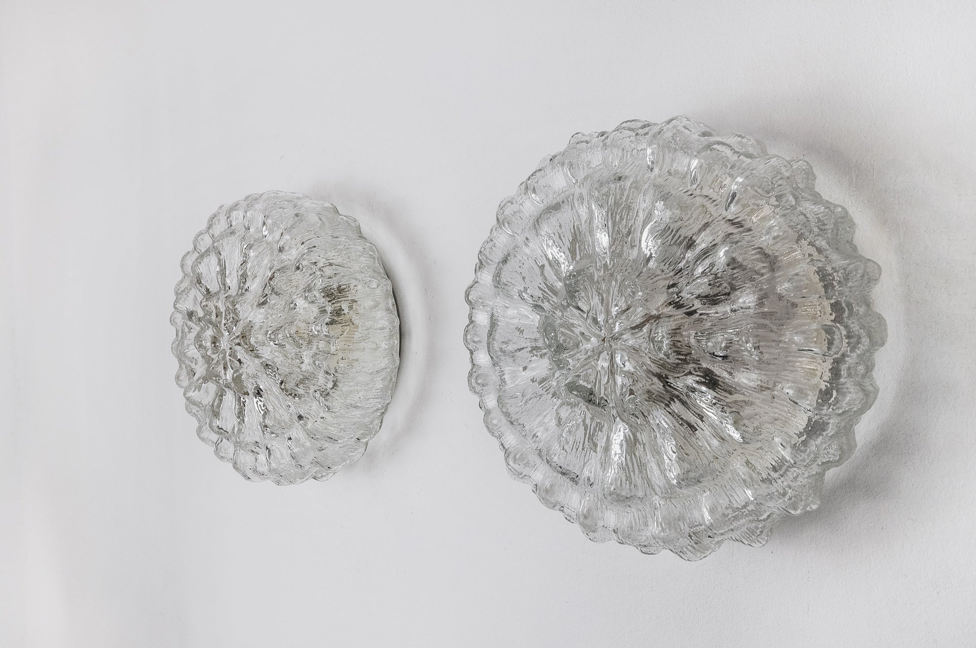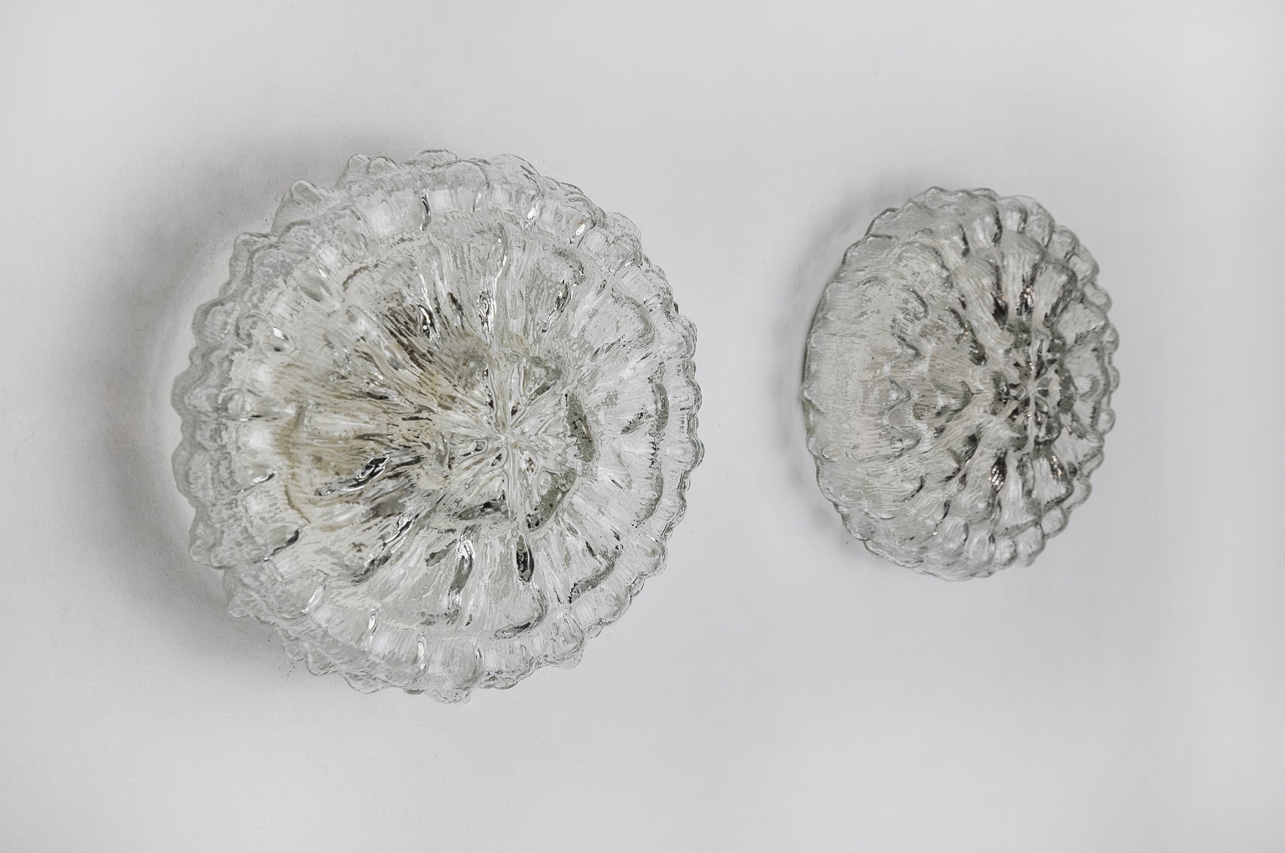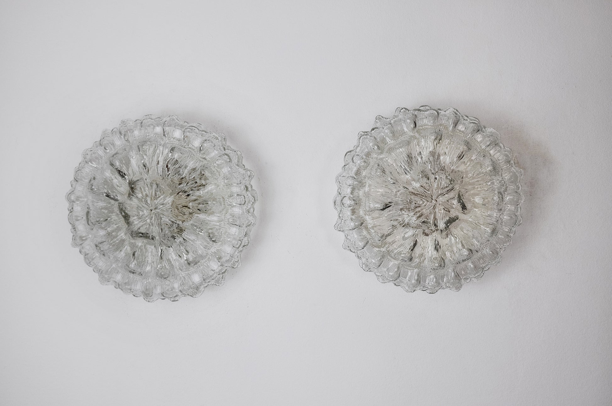 Very beautiful and large pair of bubble sconces for limburg in germany in the 1960s. Hand-blown glass domes mounted on a white metal stand. A classic of modern design that will illuminate your interior perfectly. Verified electricity, time mark consistent with the age of the object. Easy installation. We adapt electricity for American market at no costs. Please make sure to request it when ordering. Lightning should always be checked and installed by a professional in all cases. Malamar declines any responsibility.