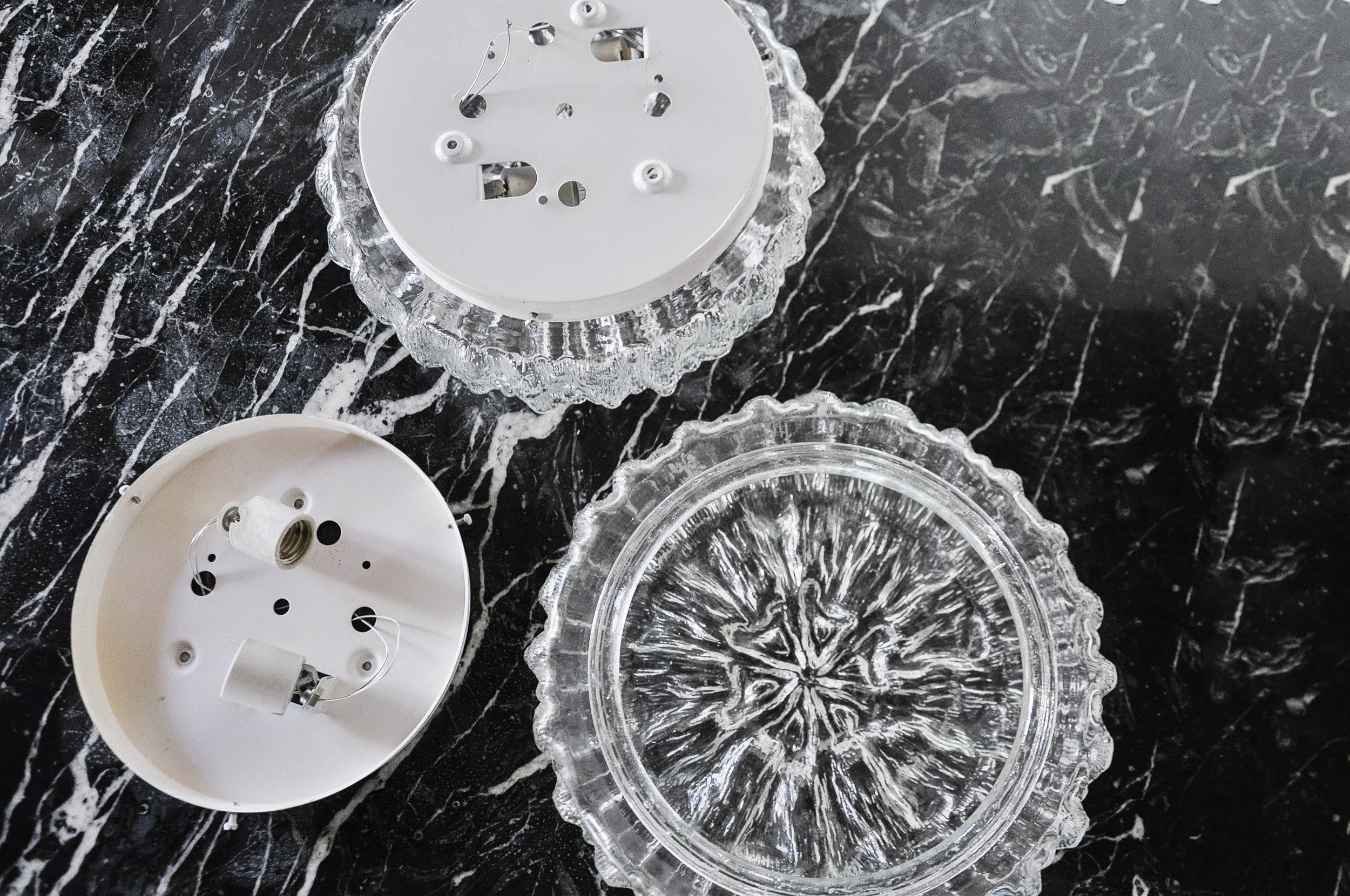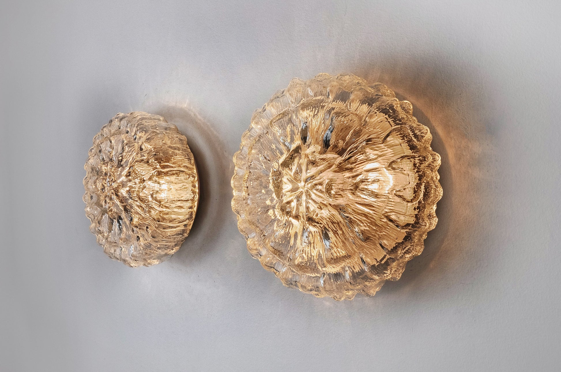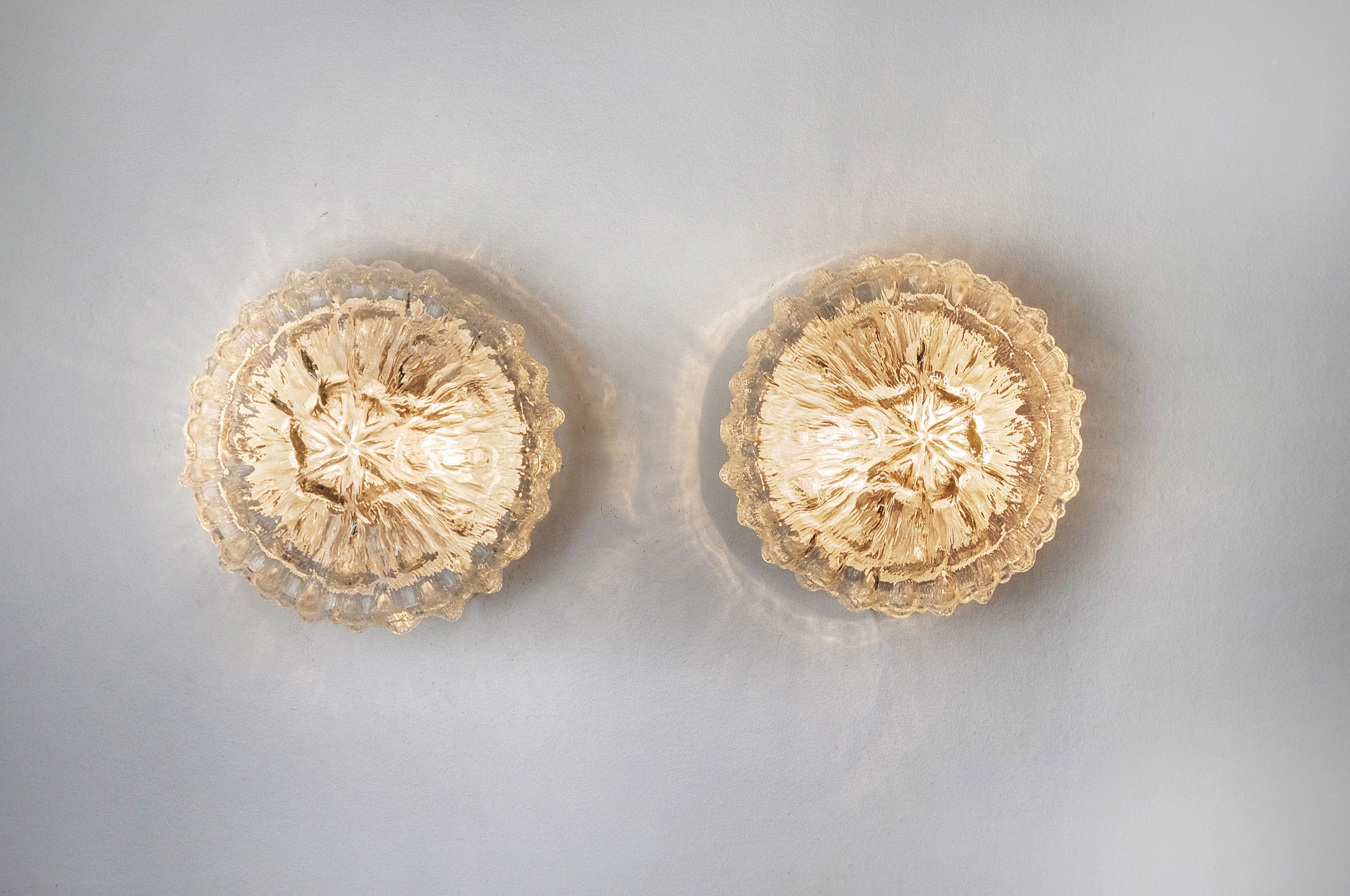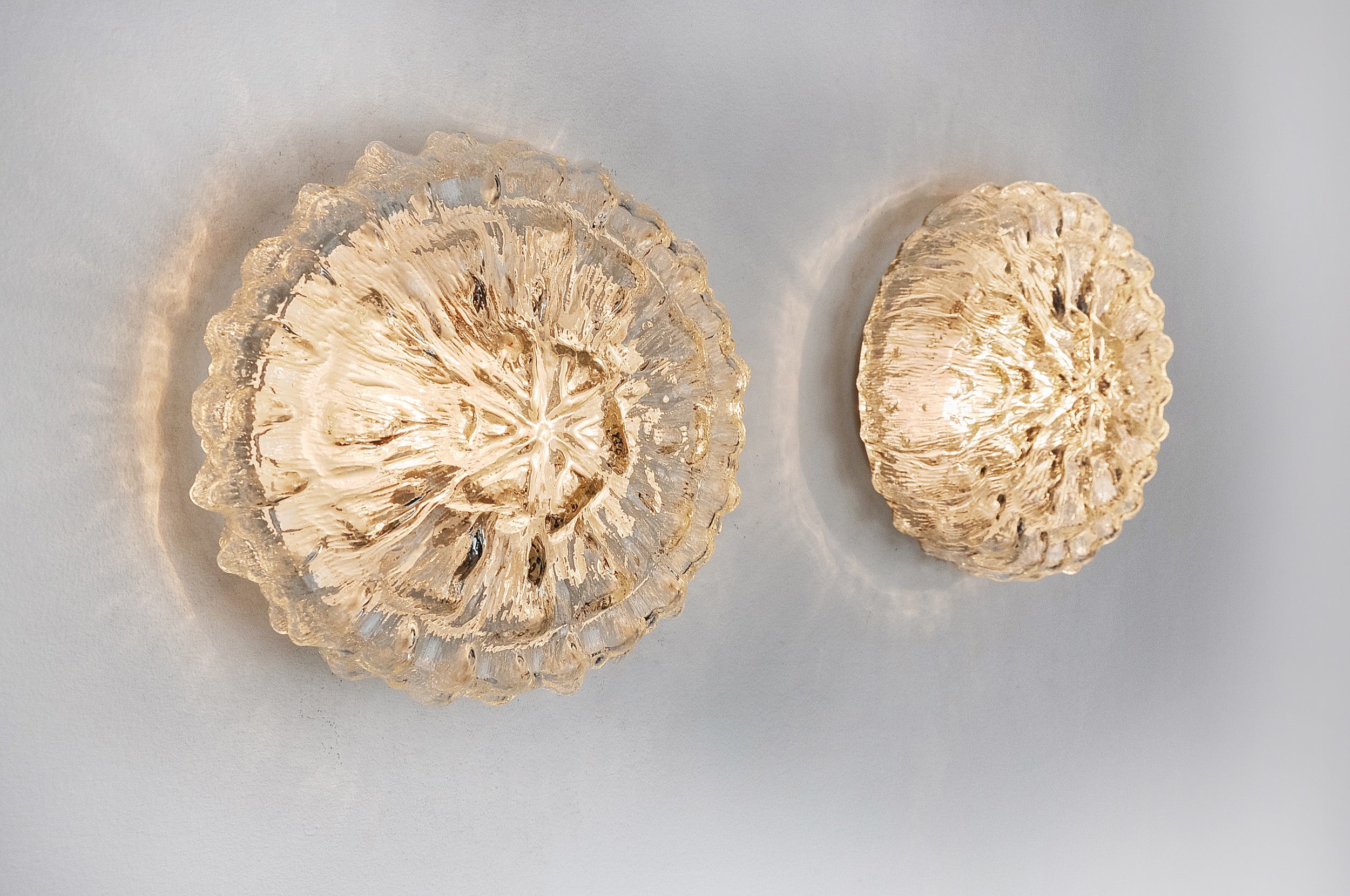 Very beautiful and large pair of bubble sconces for limburg in germany in the 1960s. Hand-blown glass domes mounted on a white metal stand. A classic of modern design that will illuminate your interior perfectly. Verified electricity, time mark consistent with the age of the object. Easy installation. We adapt electricity for American market at no costs. Please make sure to request it when ordering. Lightning should always be checked and installed by a professional in all cases. Malamar declines any responsibility.