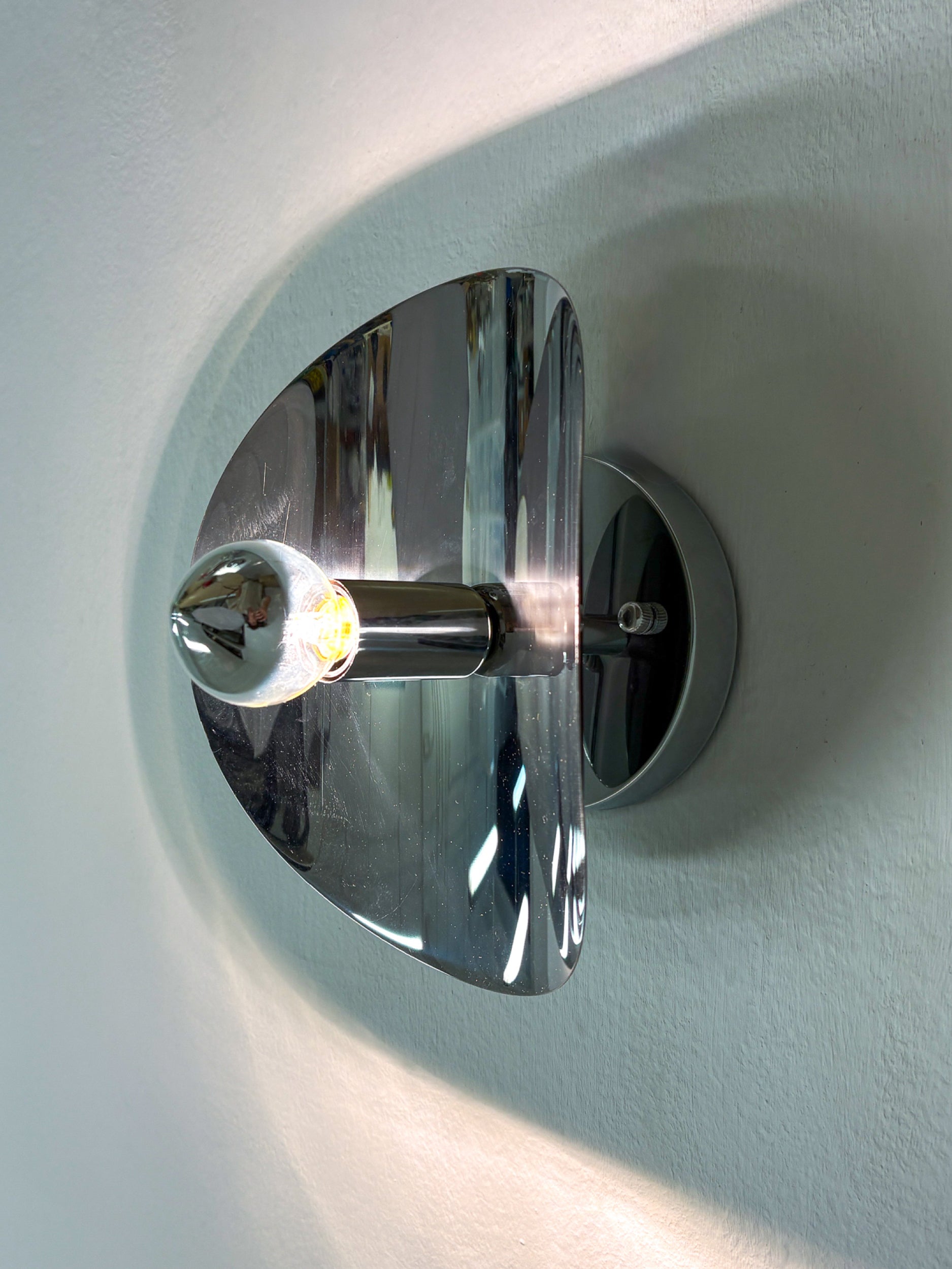 Beautiful pair of folio space age sconces produced in italy in the 70s. Chromed metal structure. Unique object that will illuminate wonderfully and bring a real design touch to your interior. Good state of preservation consistent with the object's age. Electricity checked. Easy installation, cables not visible. Ref: 1518