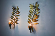 Pair of golden floral sconces by Ferro Arte, Spain, 1980