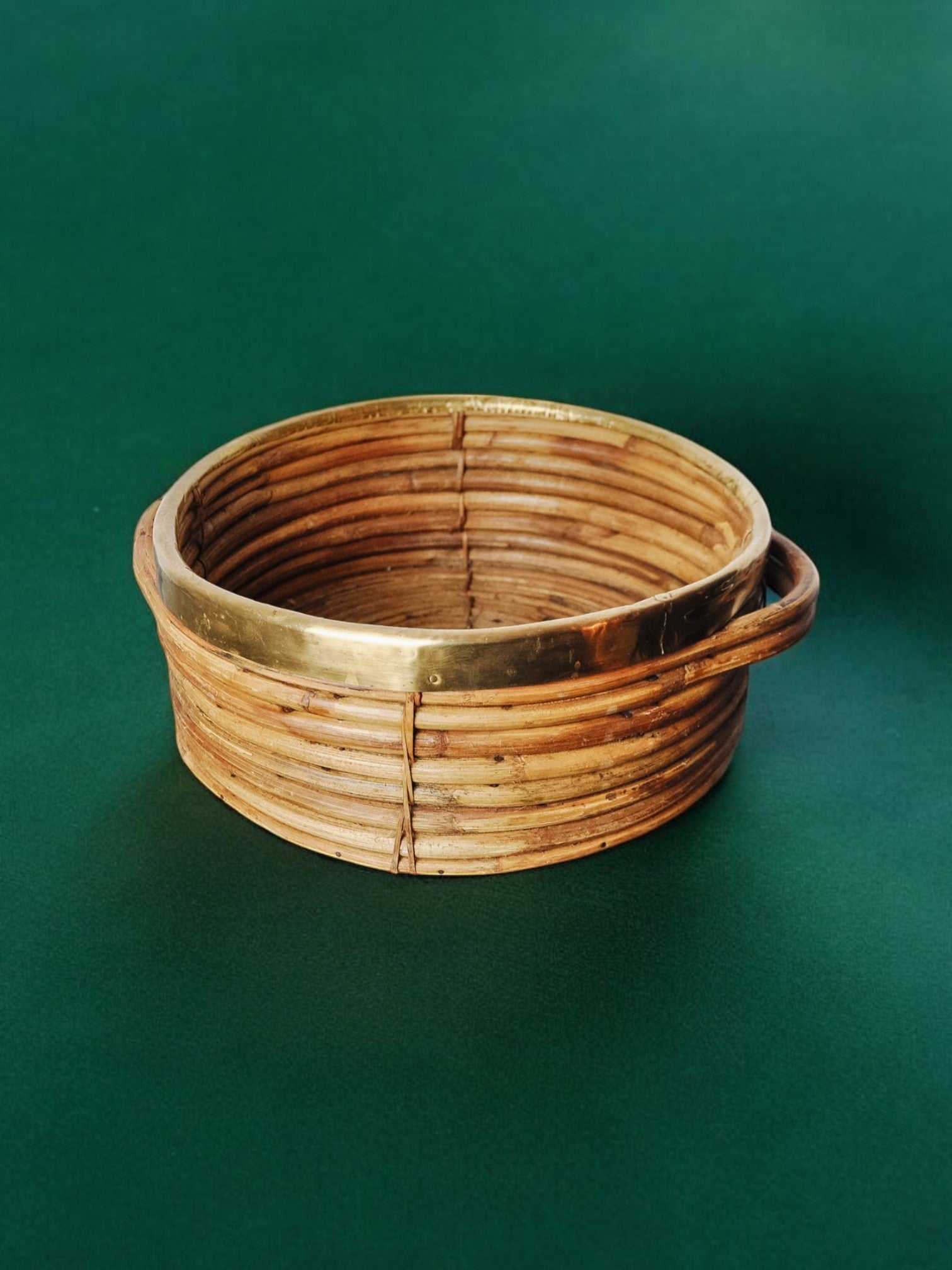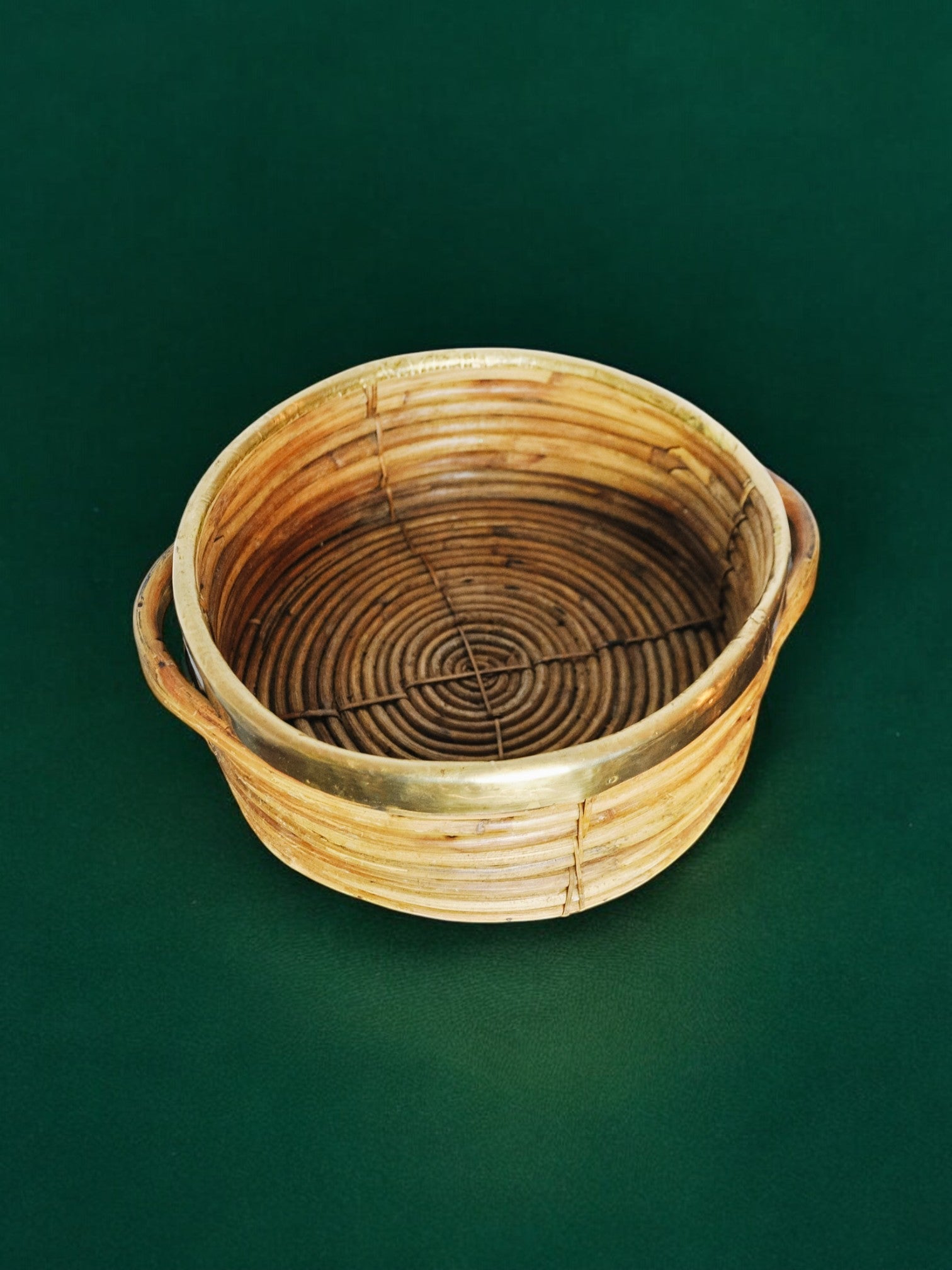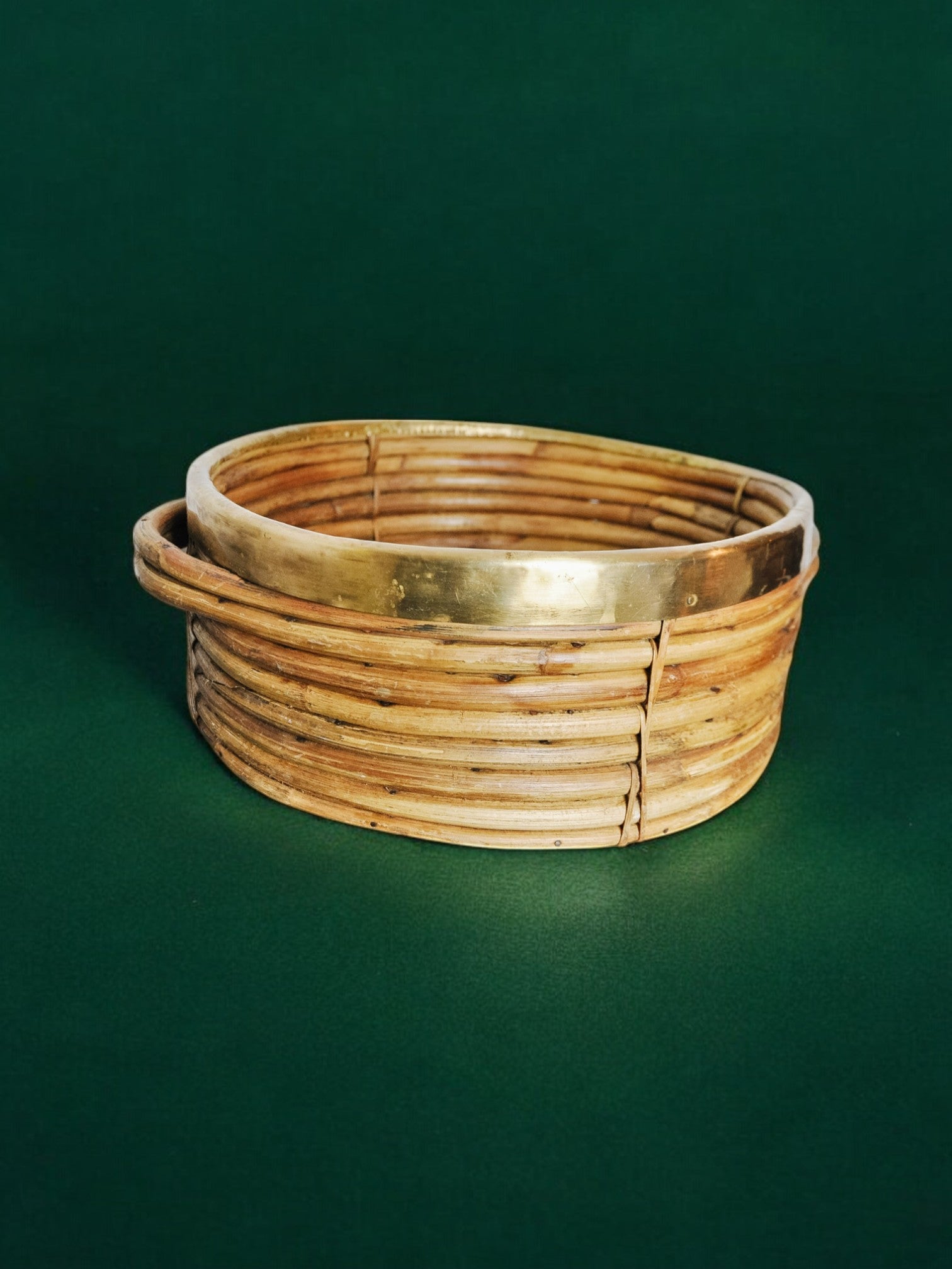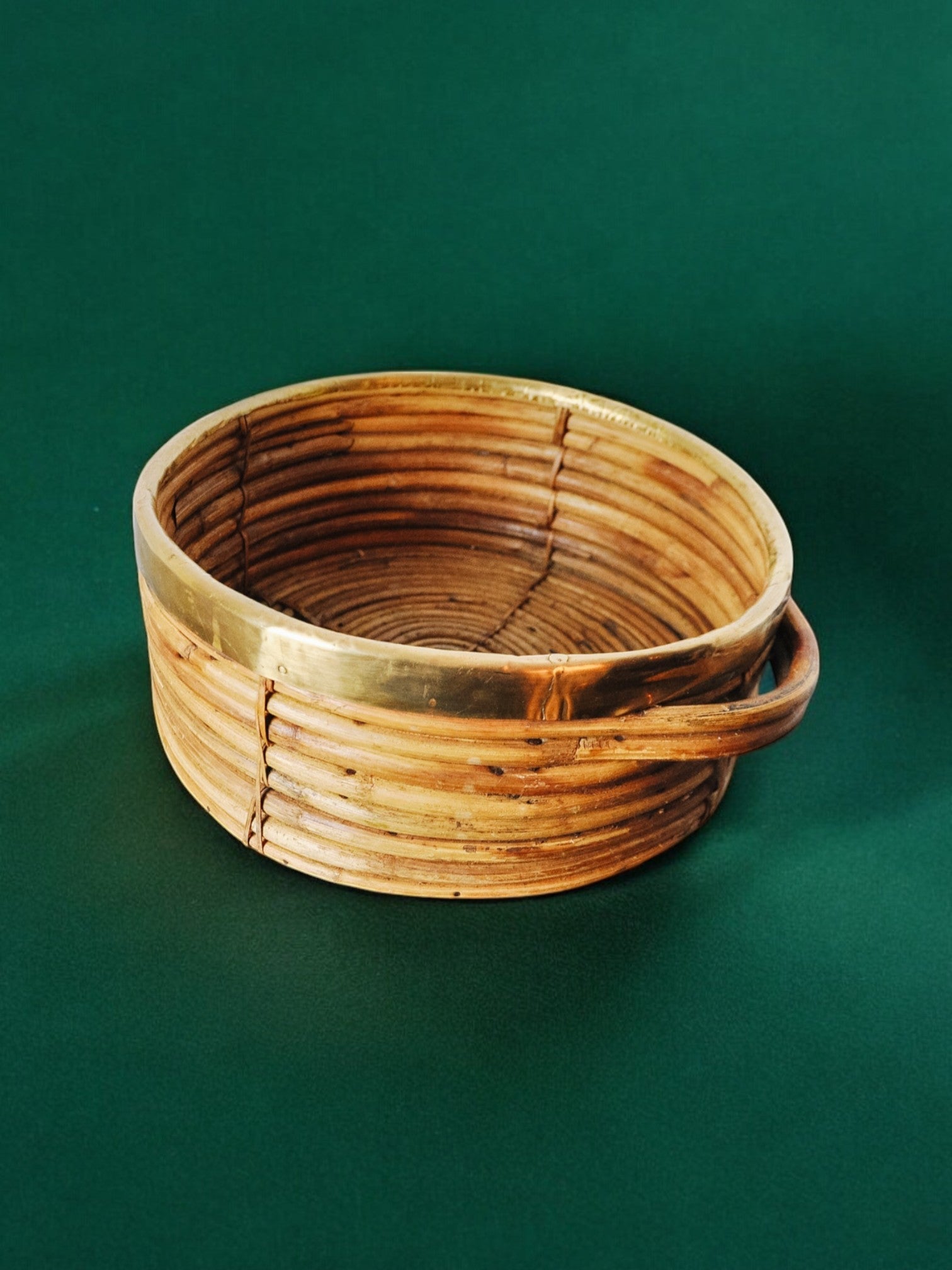 Rattan and brass basket, Italy, 1970s