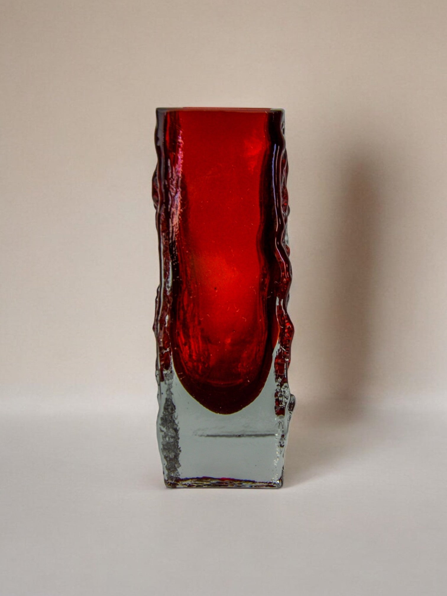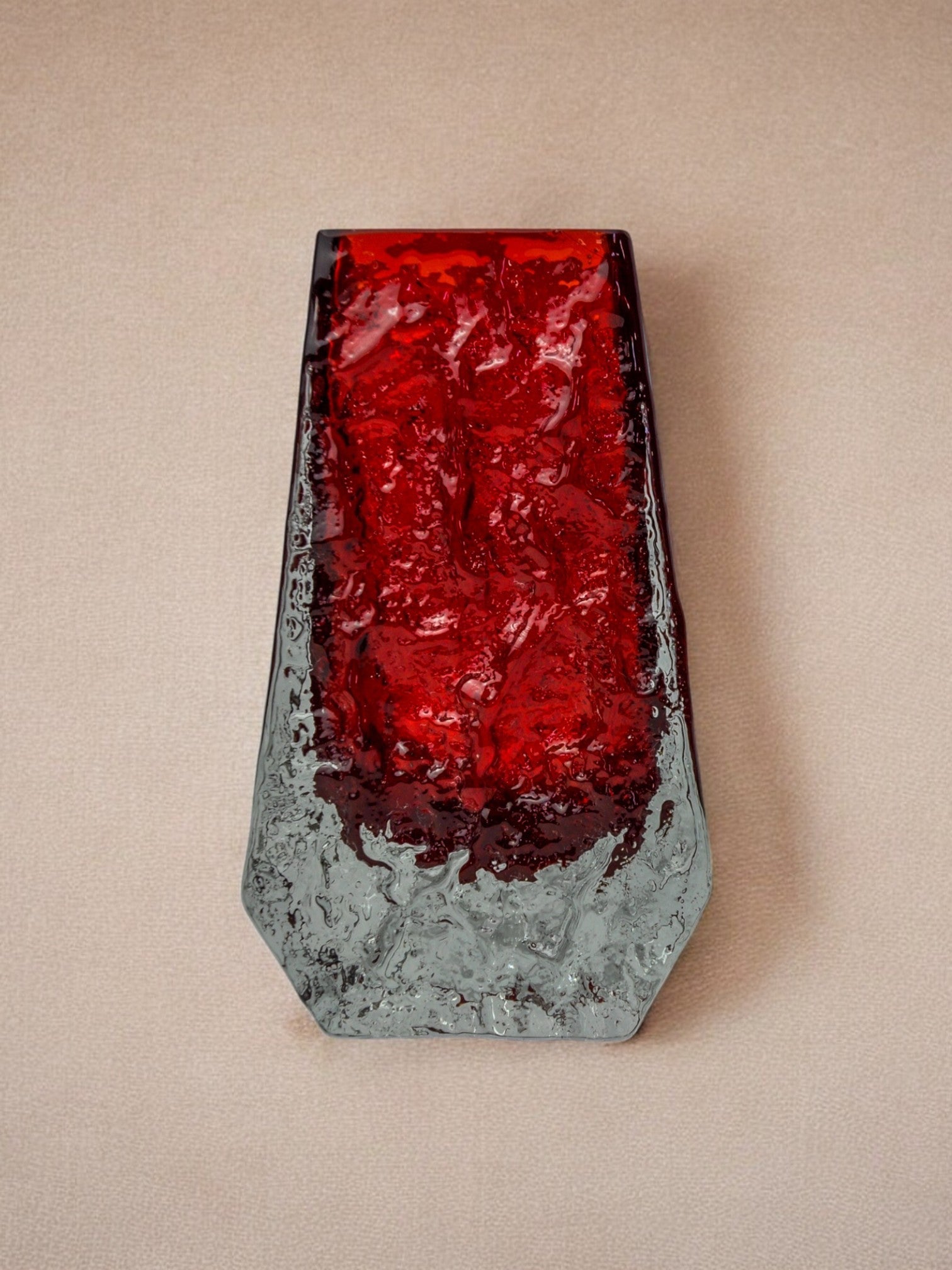 Sommerso red ice cube effect vase by Seguso, Murano, Italy, 1970